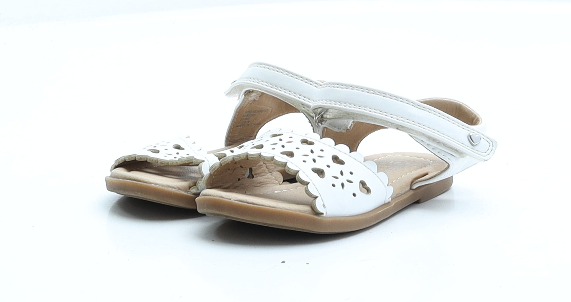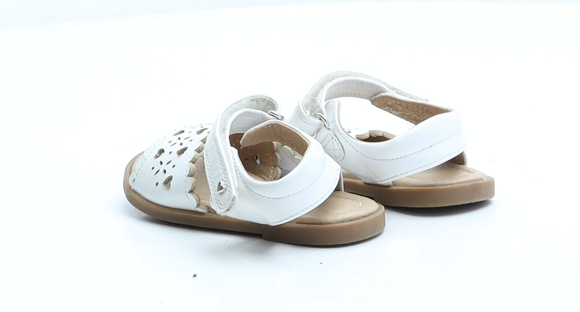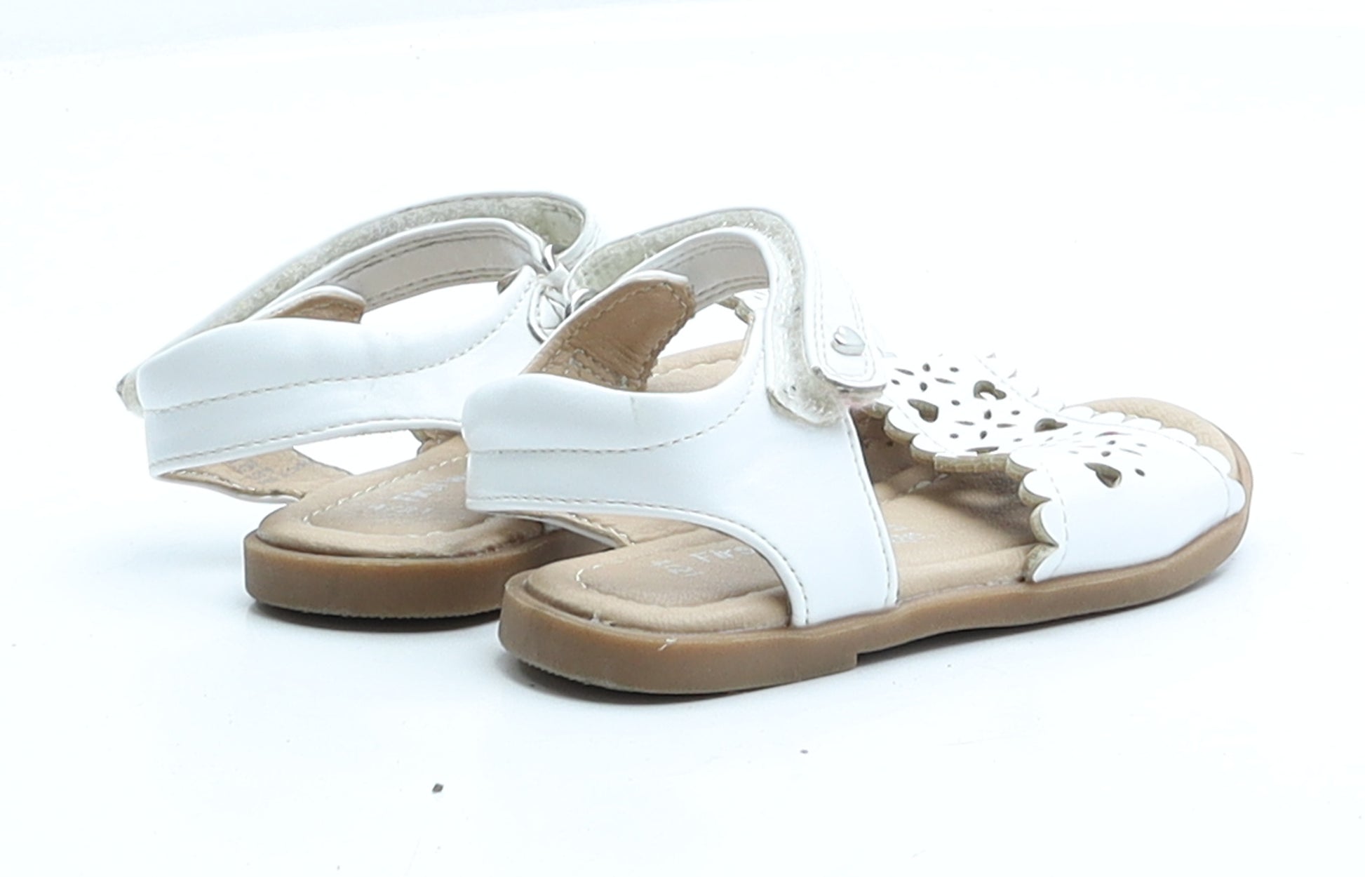 Girls White Faux Leather Flat Sandal UK 4 EUR 21