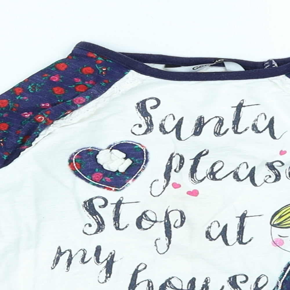 Girls White Floral Basic T-Shirt Size 2-3 Years - Christmas