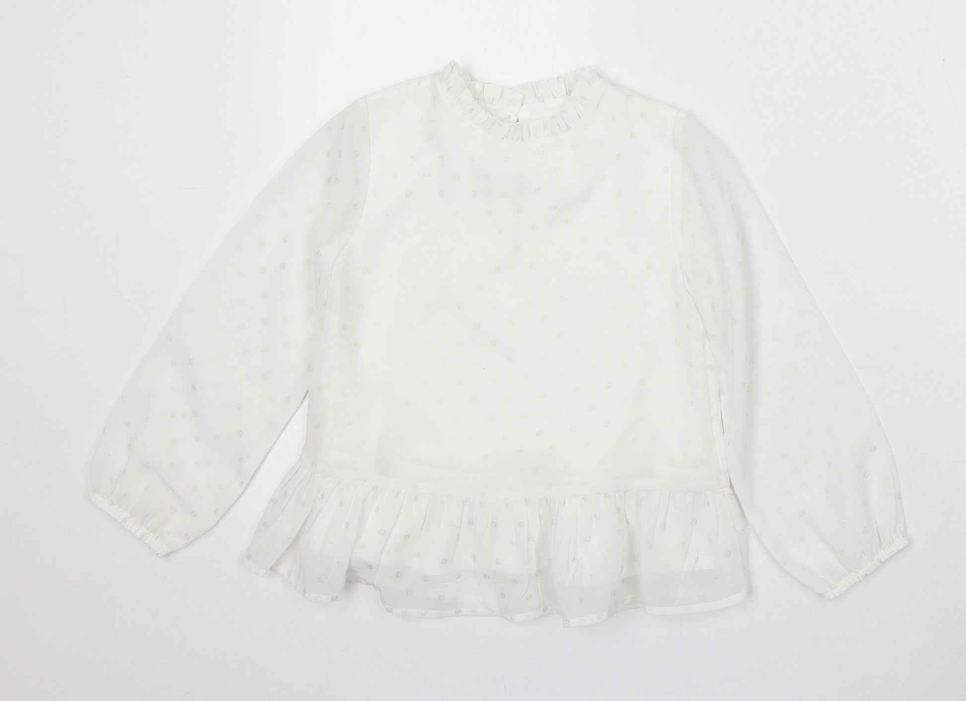 Girls White Polyester Basic Blouse Size 4-5 Years Round Neck Button
