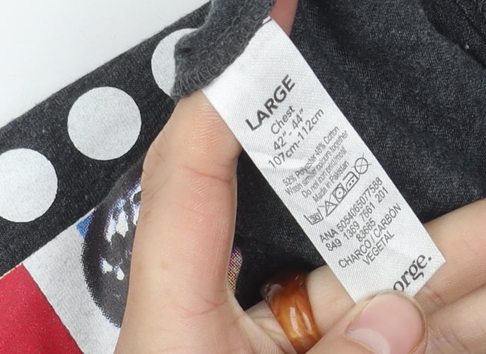 This George men's T-shirt celebrates the classic British sitcom 'Only Fools and Horses'. In a stylish large size and crafted in a comfortable crew neck style, the shirt features a bold graphic print of the iconic character Del Boy, making it a must-have for fans of the show. Made from a durable jersey fabric consisting of 90% cotton and 10% polyester, this T-shirt ensures a comfortable fit while maintaining its shape. Its black colour adds versatility, making it easy to pair with any casual outfit. Perfect for all seasons, this T-shirt is machine washable, adding practicality to its appealing design. Whether you're watching your favourite episodes or stepping out with friends, show off your love for the classic series with this stylish and statement-making piece. It’s available at an attractive used price, and its 'Excellent' condition with no visible defects assures a fair quality purchase.