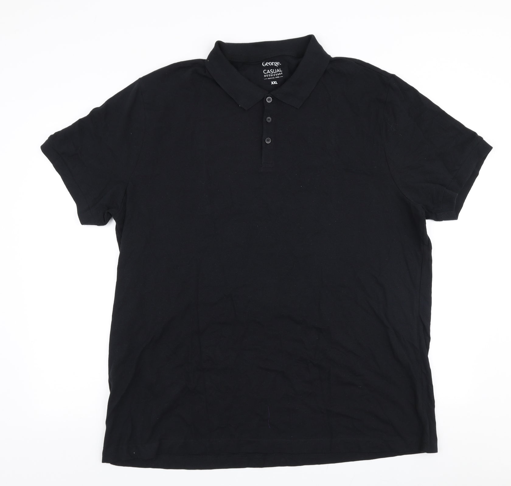 Mens Black 100% Cotton Polo Size 2XL Collared Button