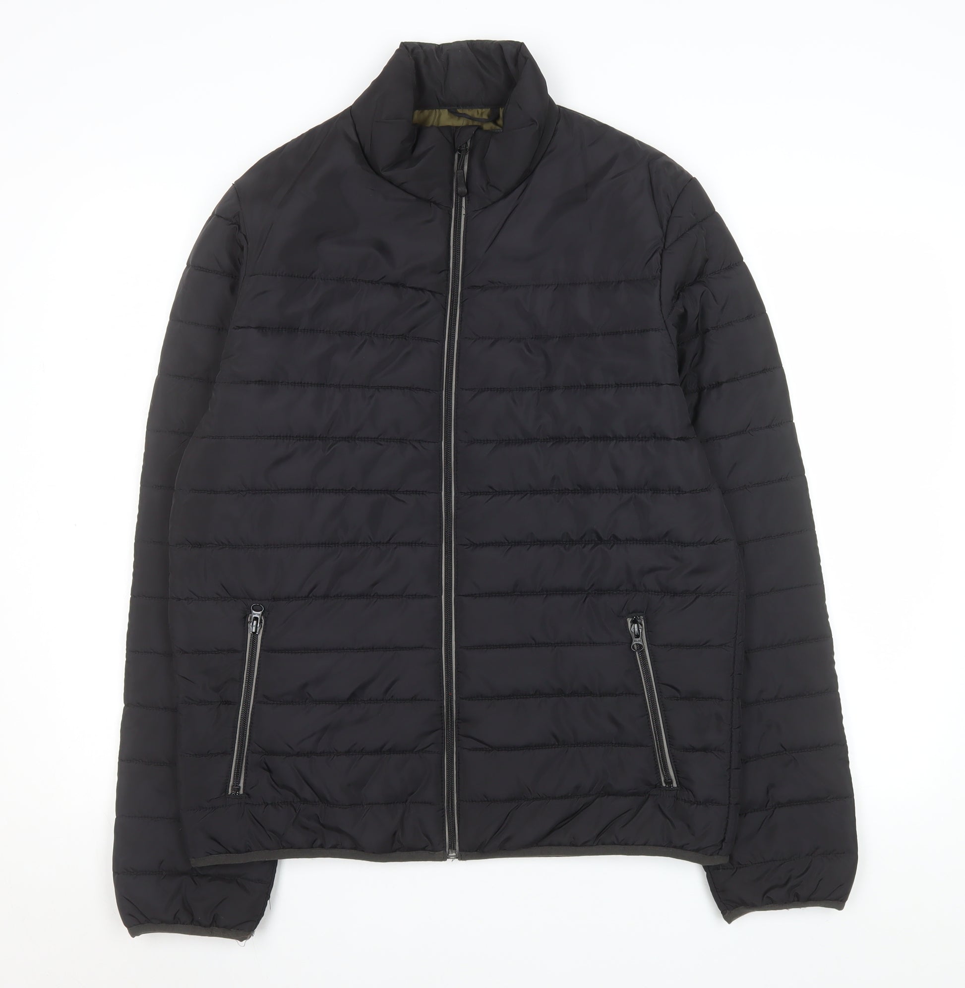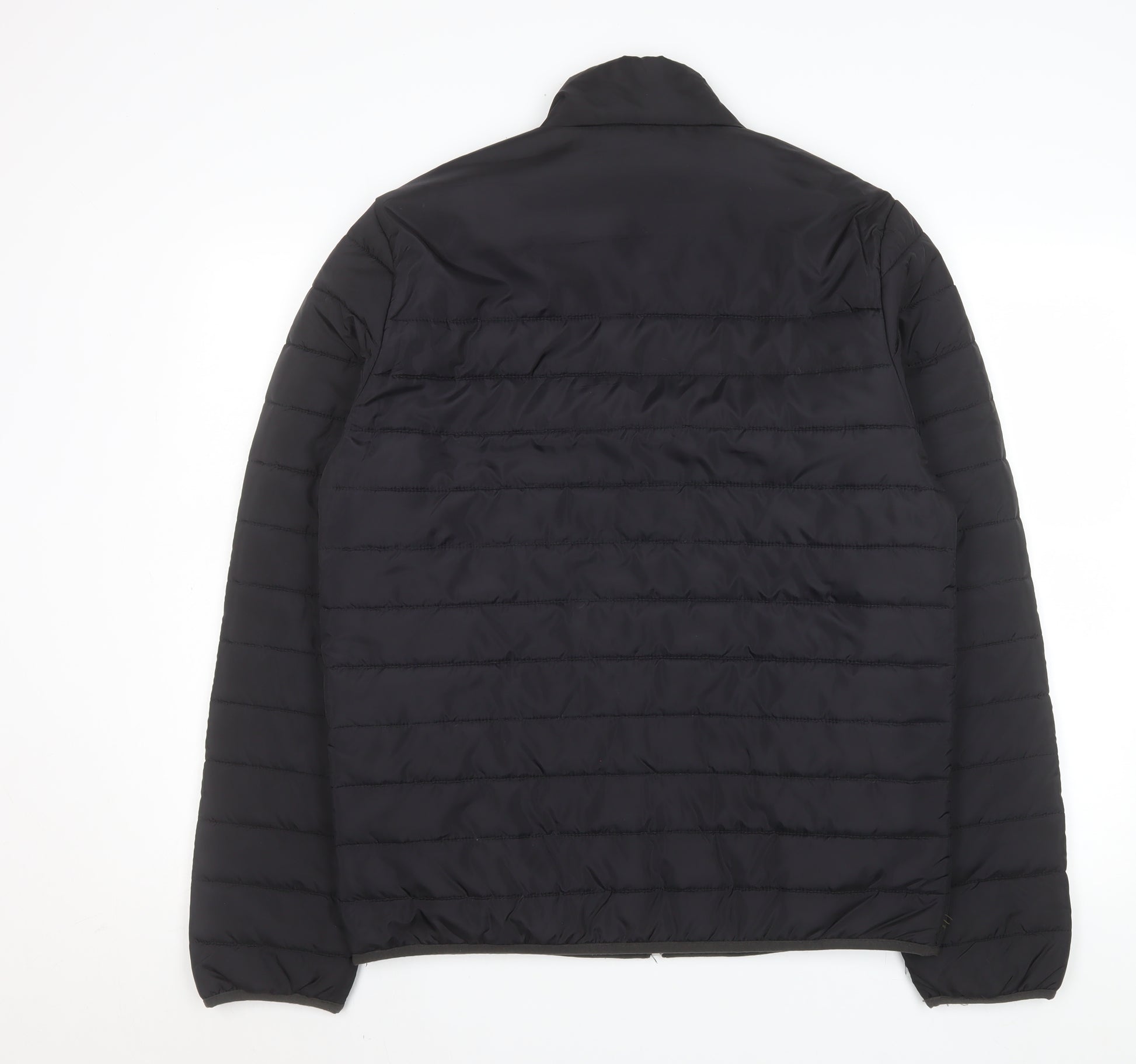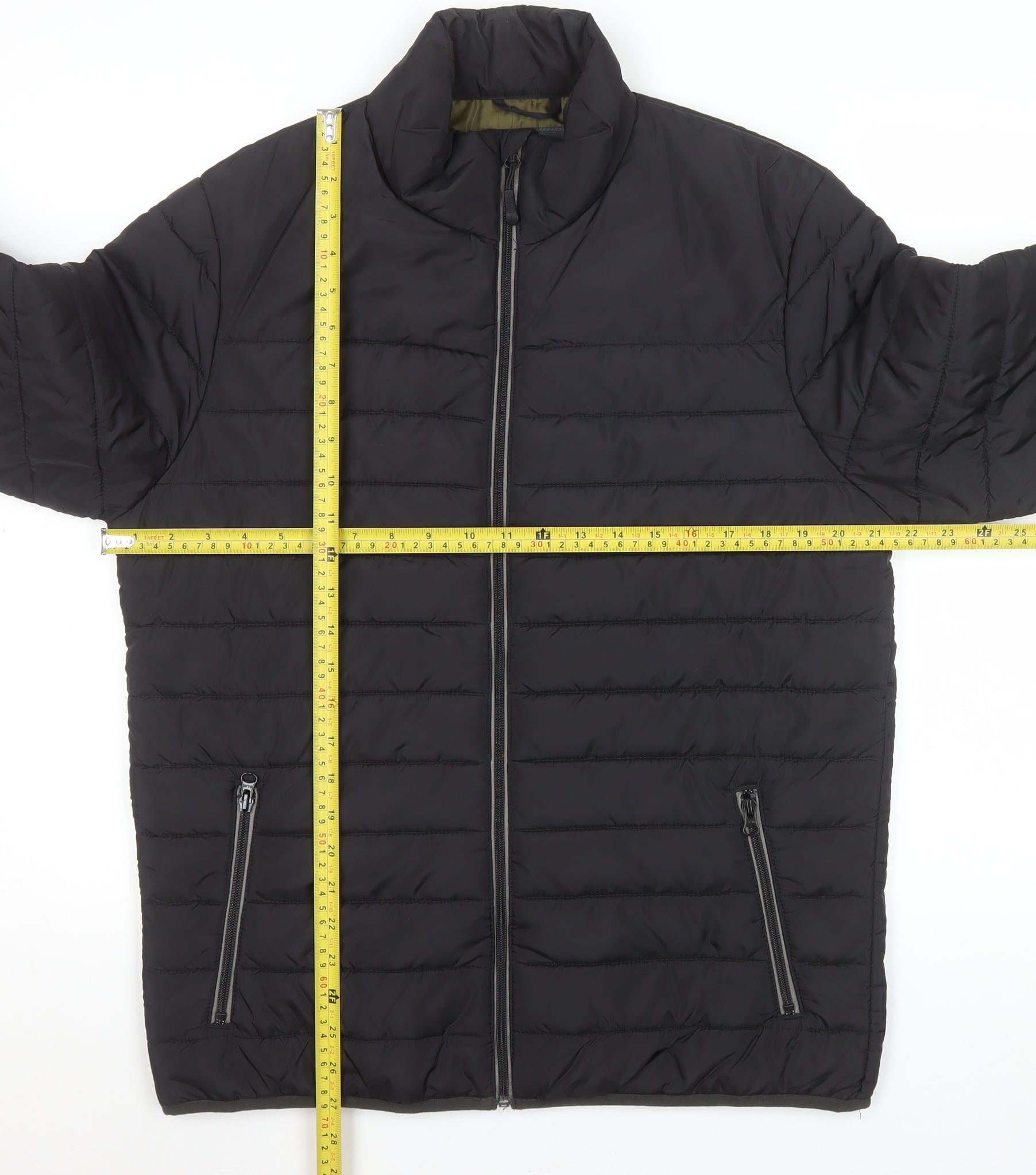 Men's Black Puffer Jacket M Regular Fit Quilted Zip Coat
