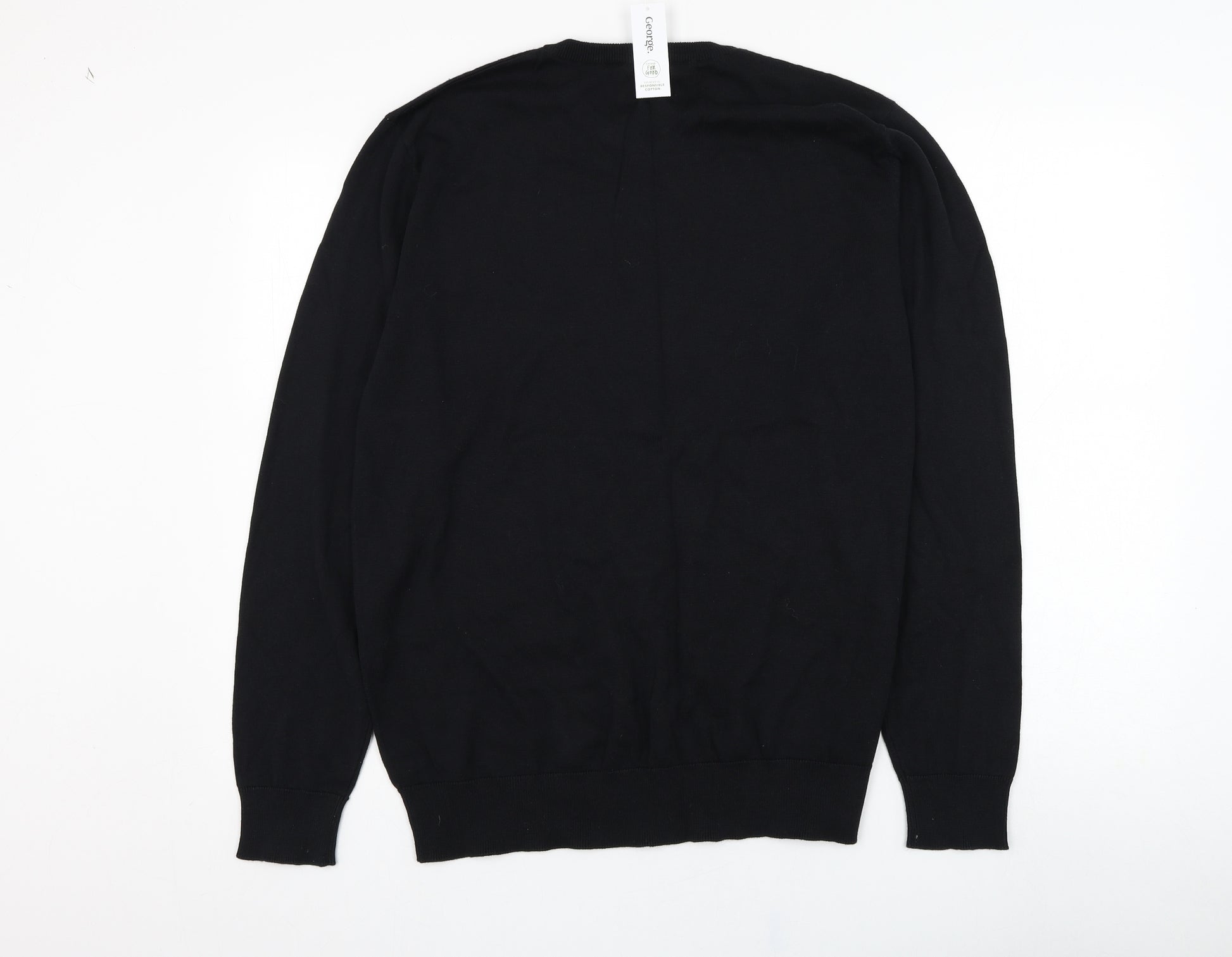 Mens Black Round Neck Cotton Pullover Jumper Size L
