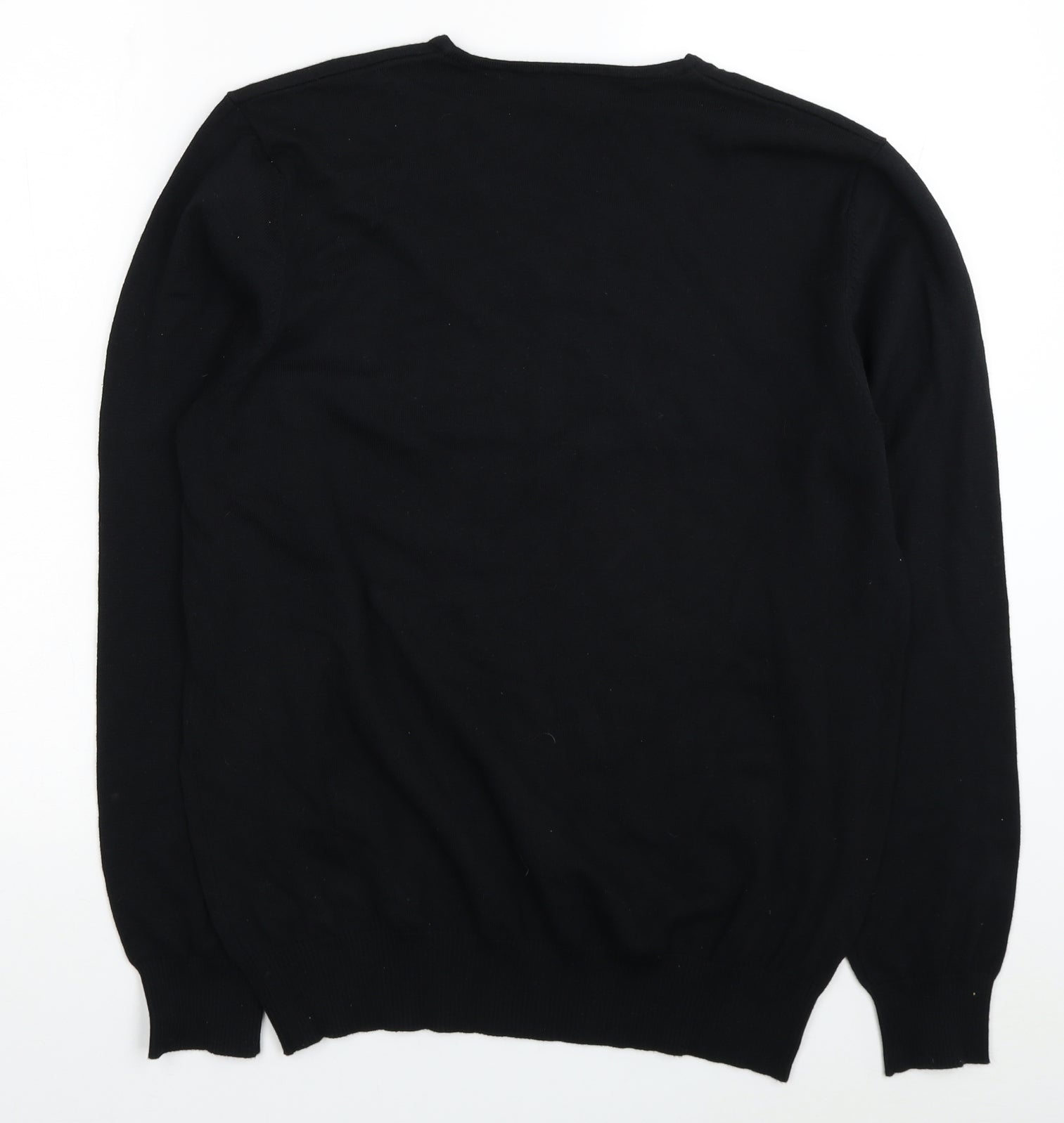 Mens Black V-Neck Cotton Pullover Jumper Size L