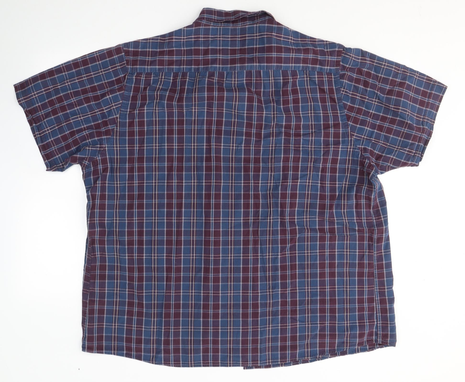 Mens Blue Plaid Cotton Button-Up Size 3XL Collared Button