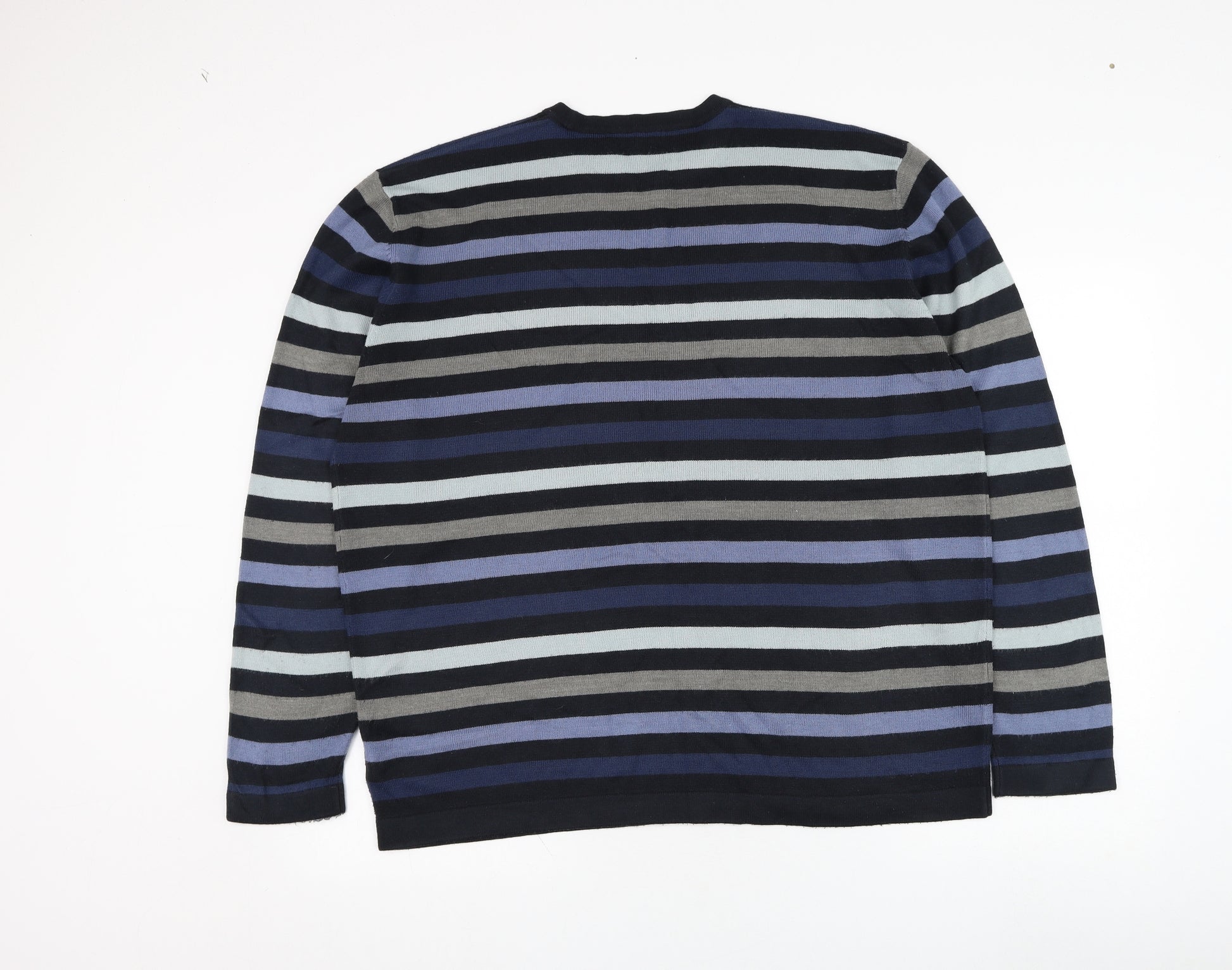 Mens Blue Round Neck Striped Acrylic Pullover Jumper Size L