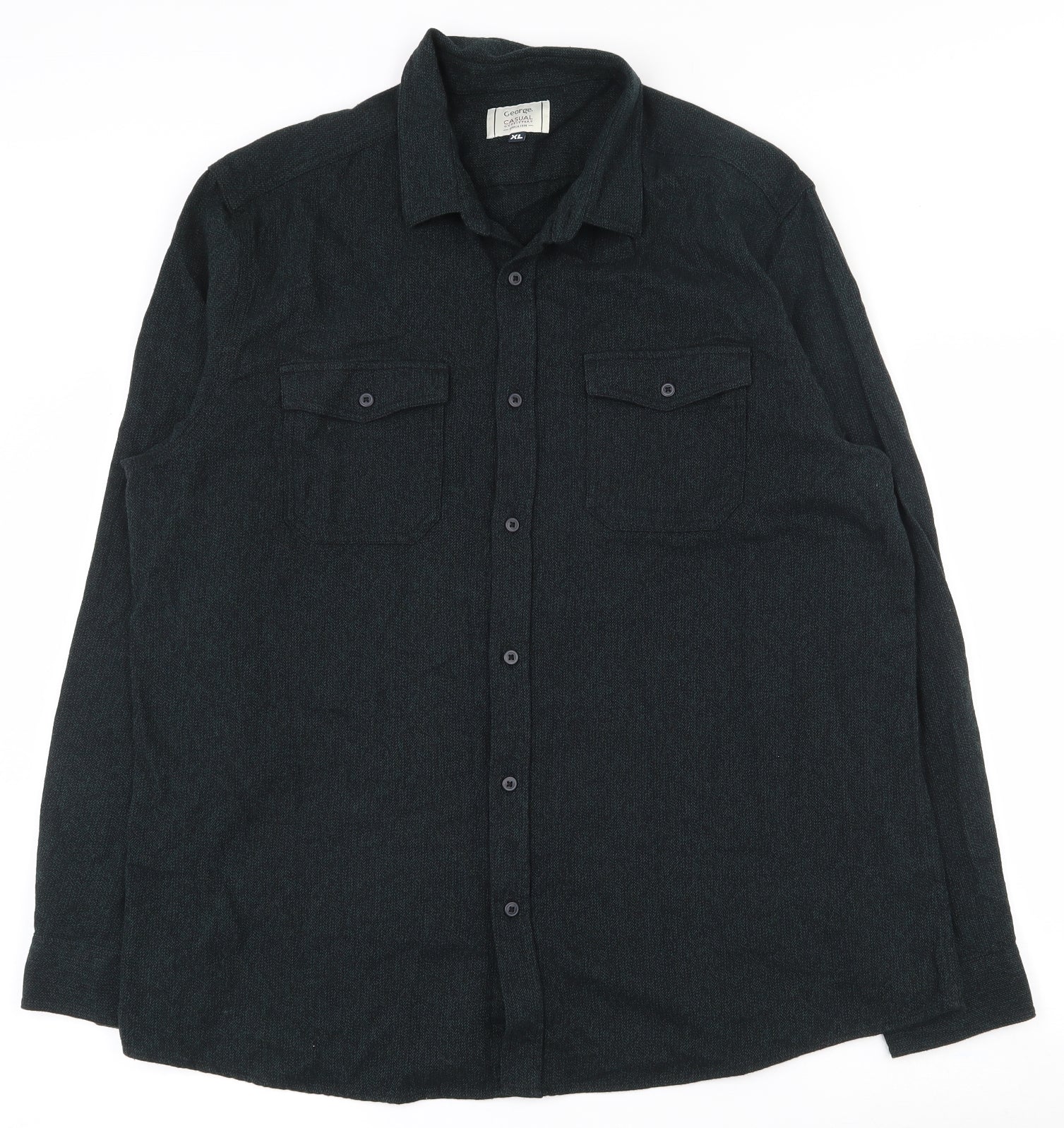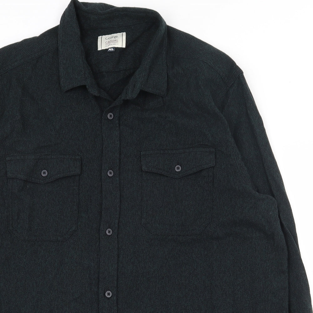 Mens Green Cotton Button-Up Size XL Collared Button