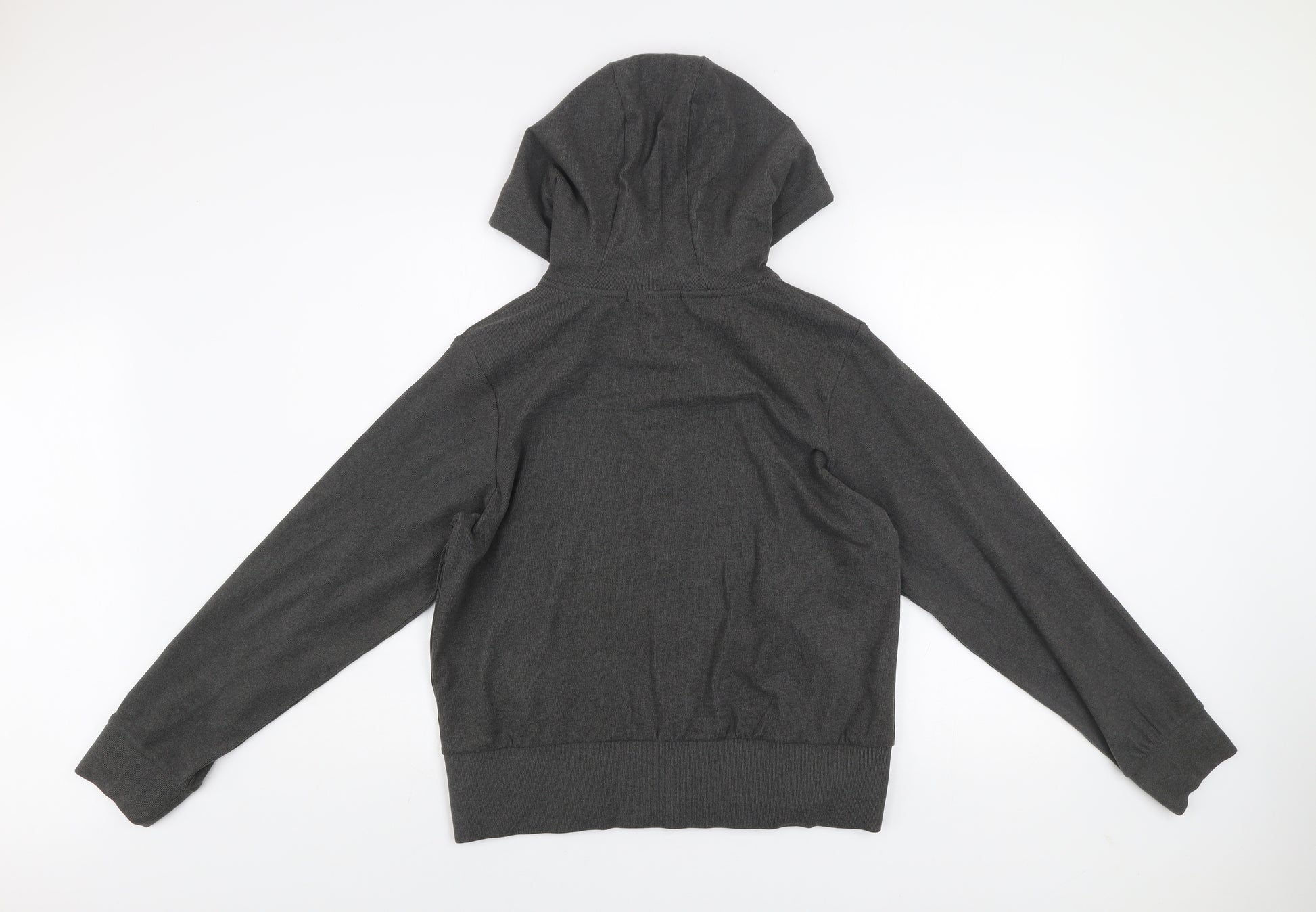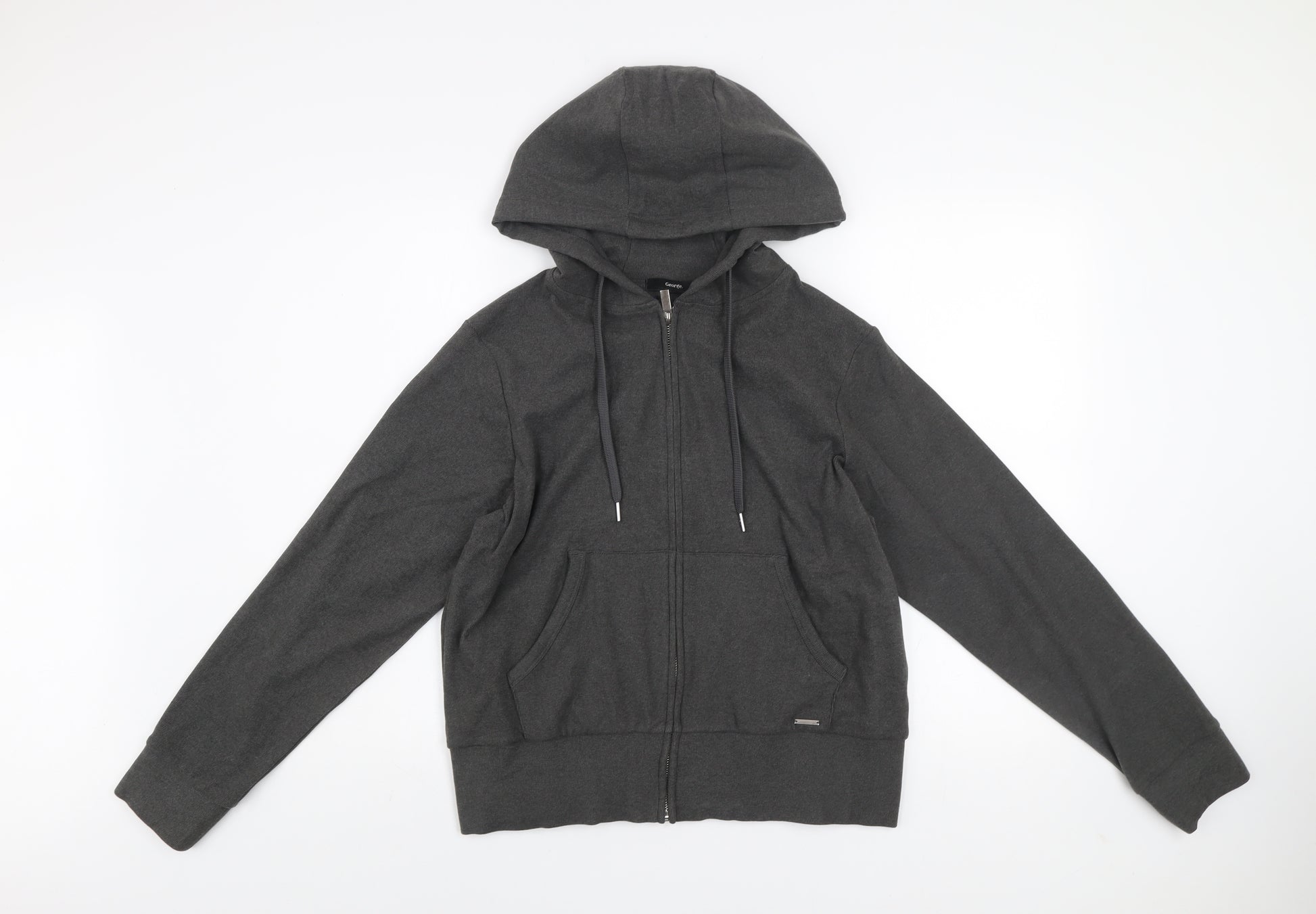 Stay comfortable and stylish during your everyday activities with this George Women’s Grey Hooded Activewear Jacket. Crafted from a soft blend of 94% polyester and 6% elastane, this lightweight jacket offers a breathable yet flexible fit that moves with your body, making it perfect for casual wear or light fitness routines such as walking, jogging, or workouts at the gym. Designed in a versatile charcoal grey shade, it easily pairs with leggings, joggers, or jeans for a clean, athletic style that transitions from home comfort to outdoor errands with ease. This women’s medium jacket features a relaxed fit with a full zip fastening for convenience and adjustable drawstrings on the hood for added warmth and coverage in cooler weather. The front kangaroo-style pockets allow you to keep small items handy or simply rest your hands comfortably. The long sleeves and ribbed hem provide a flattering silhouette while maintaining ease of movement. Its simple, no-pattern design is timeless and ensures enduring wardrobe versatility. Machine washable for easy care, this jacket offers practicality for everyday use. Perfect for layering over t-shirts or performance tops, it’s suitable for casual outings, light exercise, or travel wear. Despite showing minimal signs of use, it remains in excellent condition with no visible flaws, holes, or stains, preserving its quality and comfort. Ideal for women who value both function and simplicity, this activewear essential from George is an affordable way to stay warm and stylish without compromising on practicality. Whether you’re heading to the gym, running errands, or enjoying a walk, this jacket delivers the right blend of comfort, performance, and everyday appeal all year round.