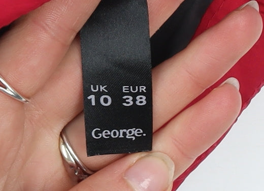 Stay cosy and stylish with this striking red puffer waistcoat from George, designed for women seeking lightweight warmth and practicality. Crafted from 100% polyester for durability and easy care, it’s both machine washable and ideal for everyday wear through the colder seasons. The quilted design not only adds texture and structure but helps retain warmth, making this gilet a versatile addition to your winter or autumn wardrobe.Its full zip front provides effortless wear, while the soft padded body delivers comfort without unnecessary bulk. A mid-length cut flatters the figure and layers perfectly over long-sleeve tops or jumpers when stepping out for a walk, running errands, or simply adding an extra layer for travel and casual weekends. The sleeveless design ensures maximum freedom of movement, great for active days when you don’t want to compromise on style or comfort.With functional lined pockets and a sleek quilted zip accent, it combines practicality with a polished finish. The vibrant red hue brings a bold pop of colour to neutral ensembles, instantly brightening up darker looks. Whether worn with jeans, leggings or outdoor wear, it’s an excellent go-to piece that suits a range of relaxed occasions.Although gently used, this waistcoat remains in very good condition with only minor marks noted on the front panel, which do not detract from its clean, modern aesthetic. Perfect for layering when temperatures drop, it’s a reliable and fashionable outerwear essential for transitional seasons. With its easy-care fabric and contemporary silhouette, this George red quilted gilet is an affordable and chic option for women who love practical style with a pop of personality. Upgrade your cold-weather wardrobe with this timeless, versatile piece and embrace effortless comfort and colour this season.
