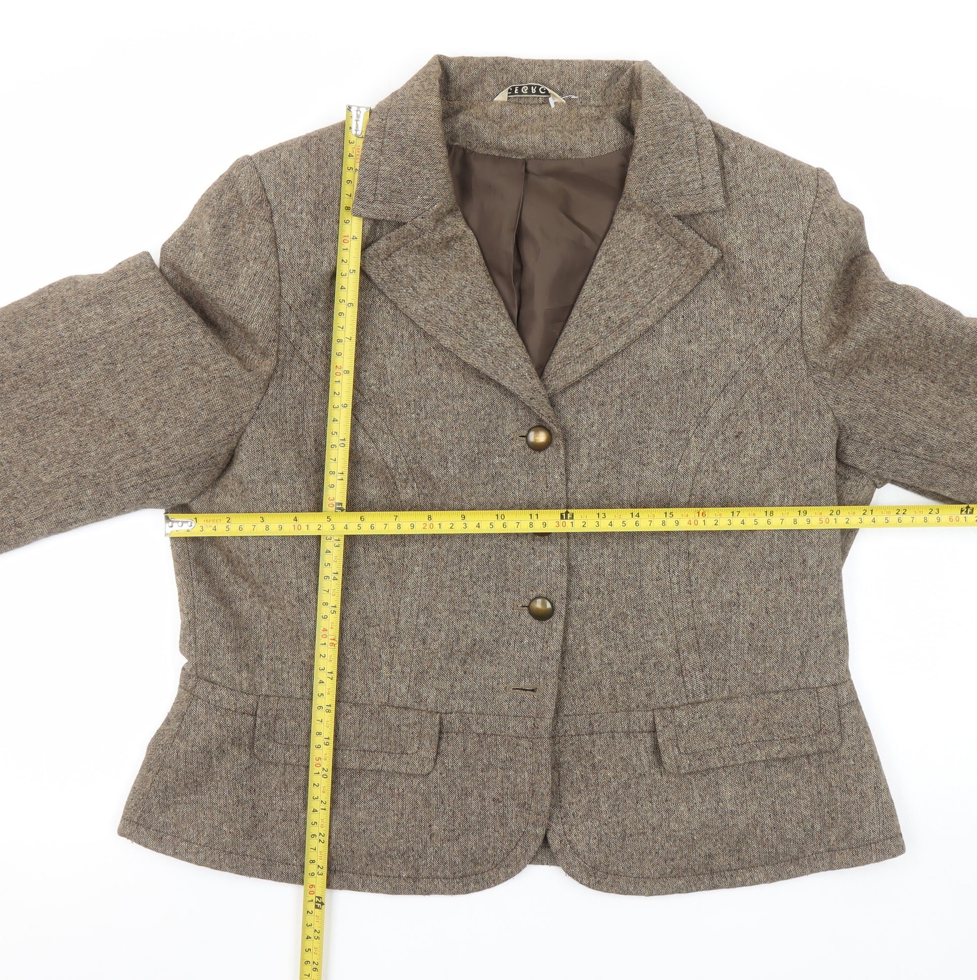 Women’s Beige Wool Blend Tweed Blazer UK 20 Single-Breasted