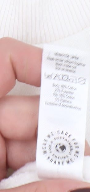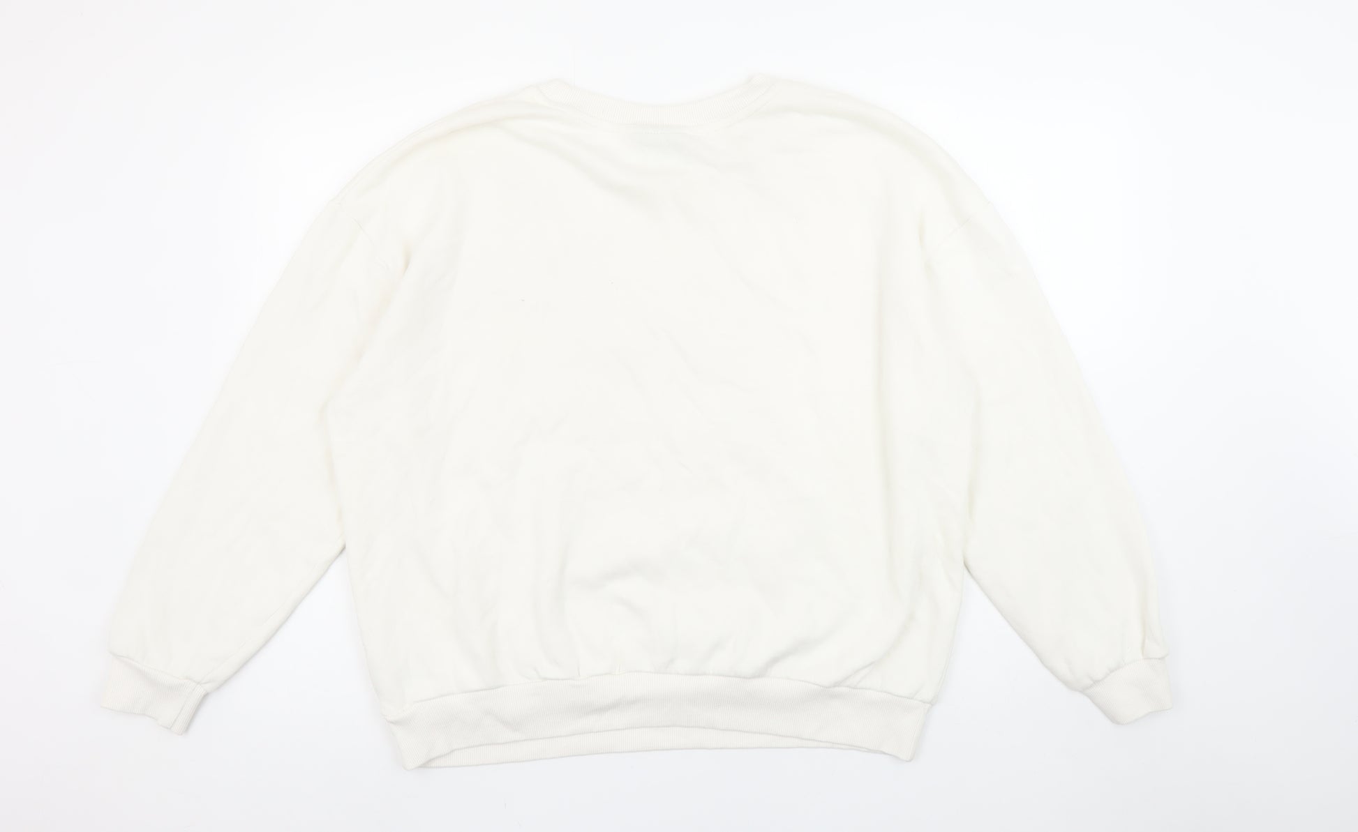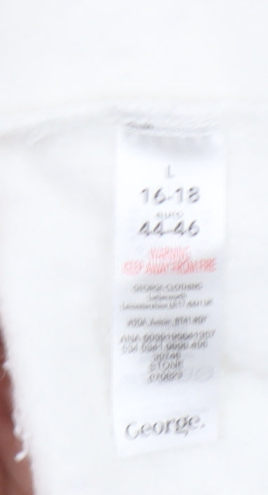 Bring some rock and roll flair to your wardrobe with this George Women’s Rolling Stones sweatshirt, a must-have for any fan of iconic style. Crafted in classic white, the design showcases the legendary Rolling Stones tongue and lips logo with a gold bow and matching gold-tone 'Rolling Stones' text, making it a standout piece. Made from a soft blended fabric, the sweatshirt’s body is composed of cotton and polyester for a comfortable, breathable feel that’s easy to care for and ideal for everyday wear. Designed with a classic crew neckline and long sleeves, it offers a relaxed and flattering fit perfect for layering or wearing solo. Ribbed cuffs and hem help retain warmth while maintaining shape, adding both practicality and a clean, polished silhouette. This sweatshirt reflects a timeless rock heritage and creates a versatile styling option, perfect for pairing with jeans or joggers for a casual yet bold look. Its soft fleece interior ensures cosy warmth, making it suitable for all seasons—from cool spring mornings to crisp autumn evenings. The sweatshirt is in excellent used condition with minimal signs of wear and no noticeable defects. As one of George’s officially licensed Rolling Stones pieces, it offers authentic design and comfort with a vintage rock aesthetic. Whether you’re heading to a concert, lounging at home, or dressing down for a relaxed outing, this sweatshirt delivers both attitude and comfort. Celebrate music legacy in style with this Rolling Stones sweatshirt—a classic blend of comfort, culture, and effortless cool that any fashion-forward music lover will appreciate.