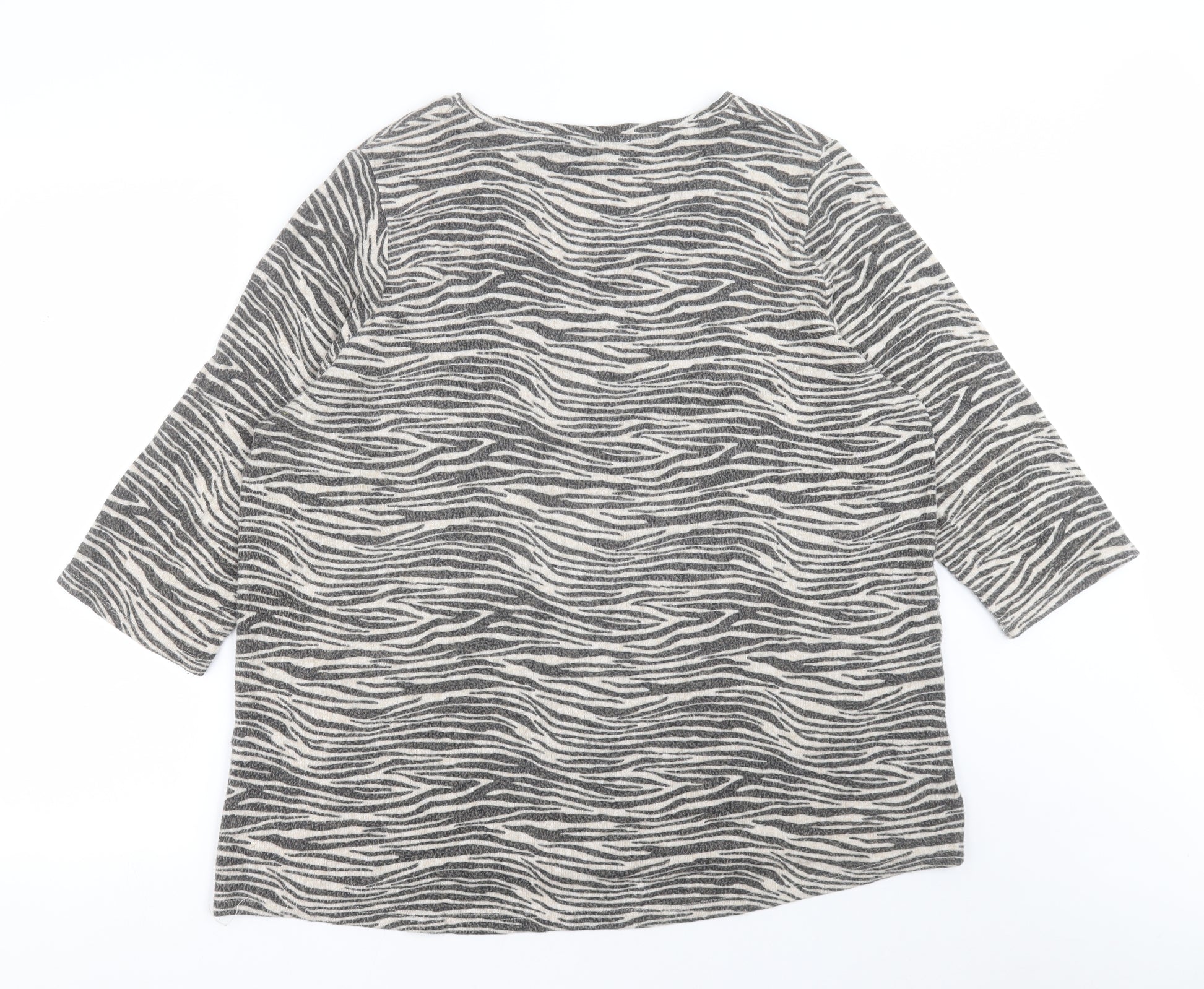 Womens Beige Animal Print Viscose Basic T-Shirt Size 20 V-Neck