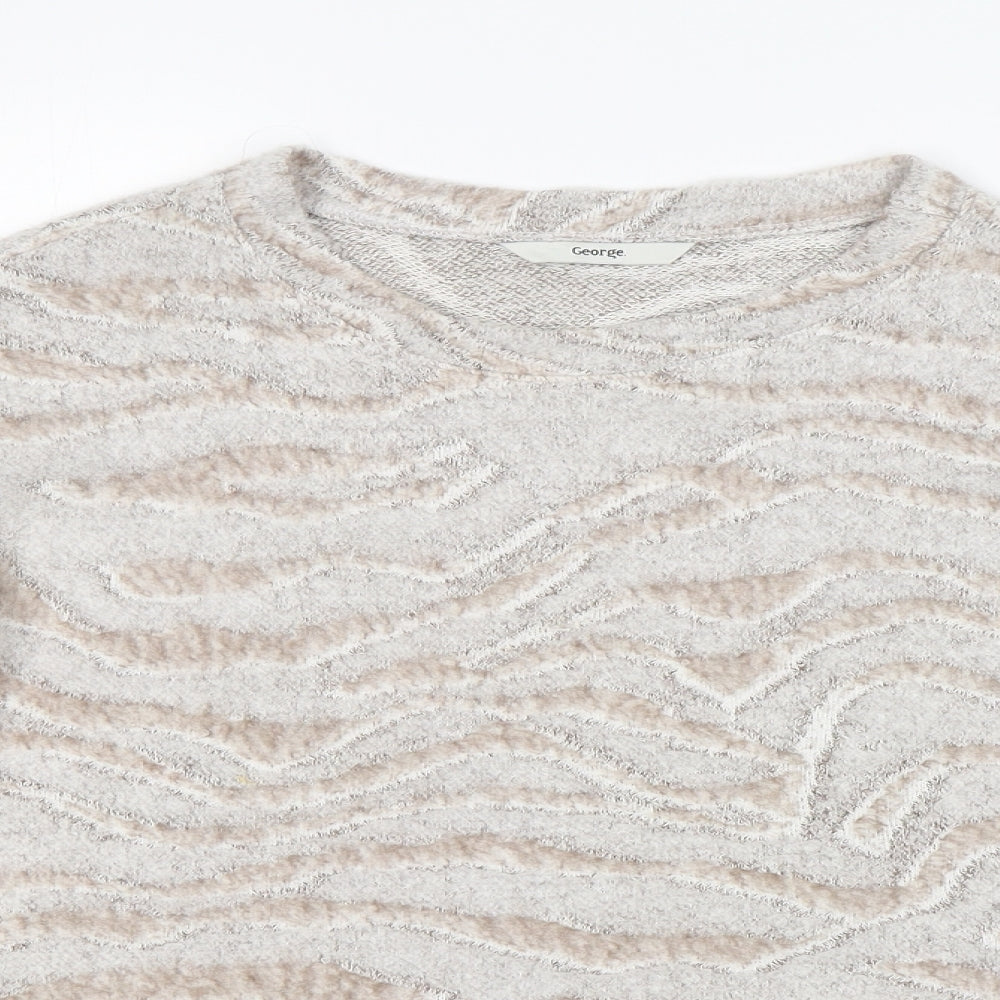 Womens Beige Round Neck Animal Print Polyester Pullover Jumper Size M