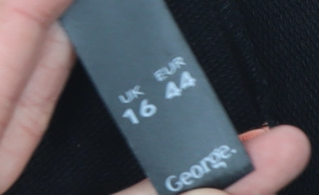 Add a touch of smart-casual elegance to your wardrobe with this women's black blazer from George. Designed in a size 16, this versatile piece is perfect for everyday workwear or laid-back outings. Crafted from 100% cotton, the blazer offers a breathable, soft feel and effortless comfort that makes it ideal for all-day wear. The woven cotton material ensures durability while maintaining a lightweight structure suitable for warmer weather or layering in cooler months. Featuring classic long sleeves and a notch lapel style, the blazer has been cut in a flattering regular fit that suits a wide range of body shapes. The coral pink trim along the lapels, cuffs, and hem adds a chic contrast, bringing modern energy to a timeless silhouette. With its open-front design, the jacket offers easy layering over tops, blouses, and dresses. Its simple, single-breasted construction and lack of front buttons give it a sleek, unfussy look. Ideal for a variety of occasions, you can pair this blazer with tailored trousers for business settings, or wear it dressed down with jeans for everyday casual wear. The smooth fabric and minimal detailing make it a reliable wardrobe staple that can seamlessly take you from the office to after-work social events. The lightweight cotton construction also makes it perfect for the spring, summer, and autumn seasons. In excellent pre-owned condition, this blazer shows very light signs of wear with no visible flaws. Comfortable, practical, and effortlessly stylish, it’s a must-have piece for anyone looking to refresh theiru2028casual smartwear collection. Whether you're heading to work or a casual lunch date, George's black cotton blazer gives you a polished finish every time.