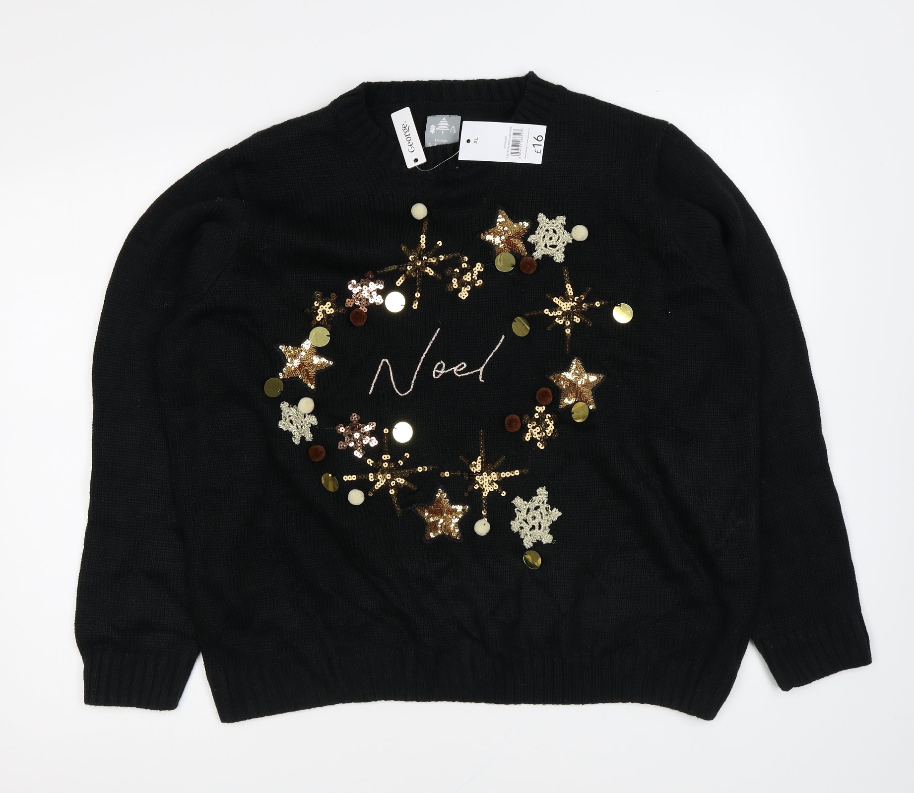 Womens Black Round Neck Acrylic Pullover Jumper Size XL - Christmas