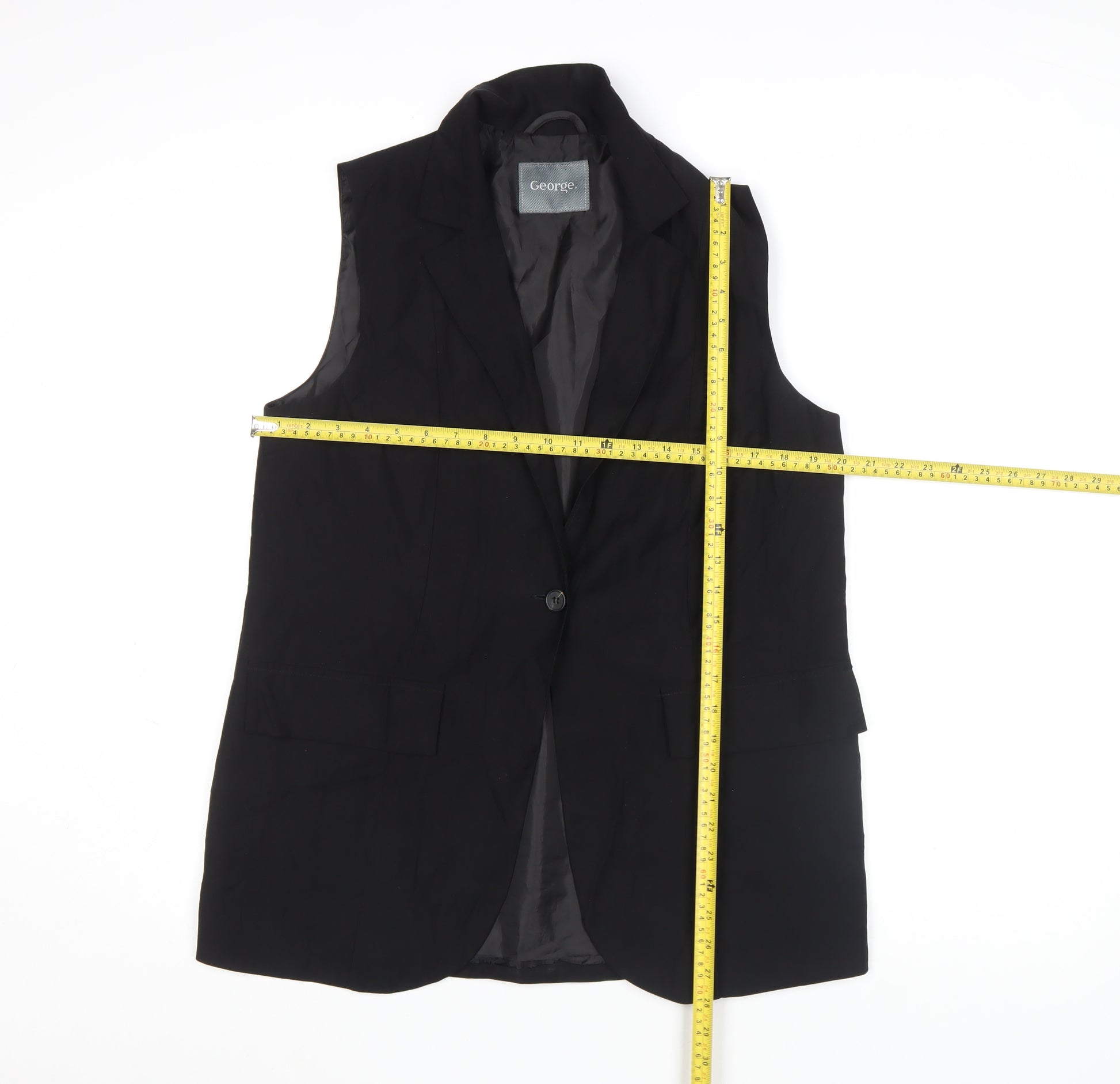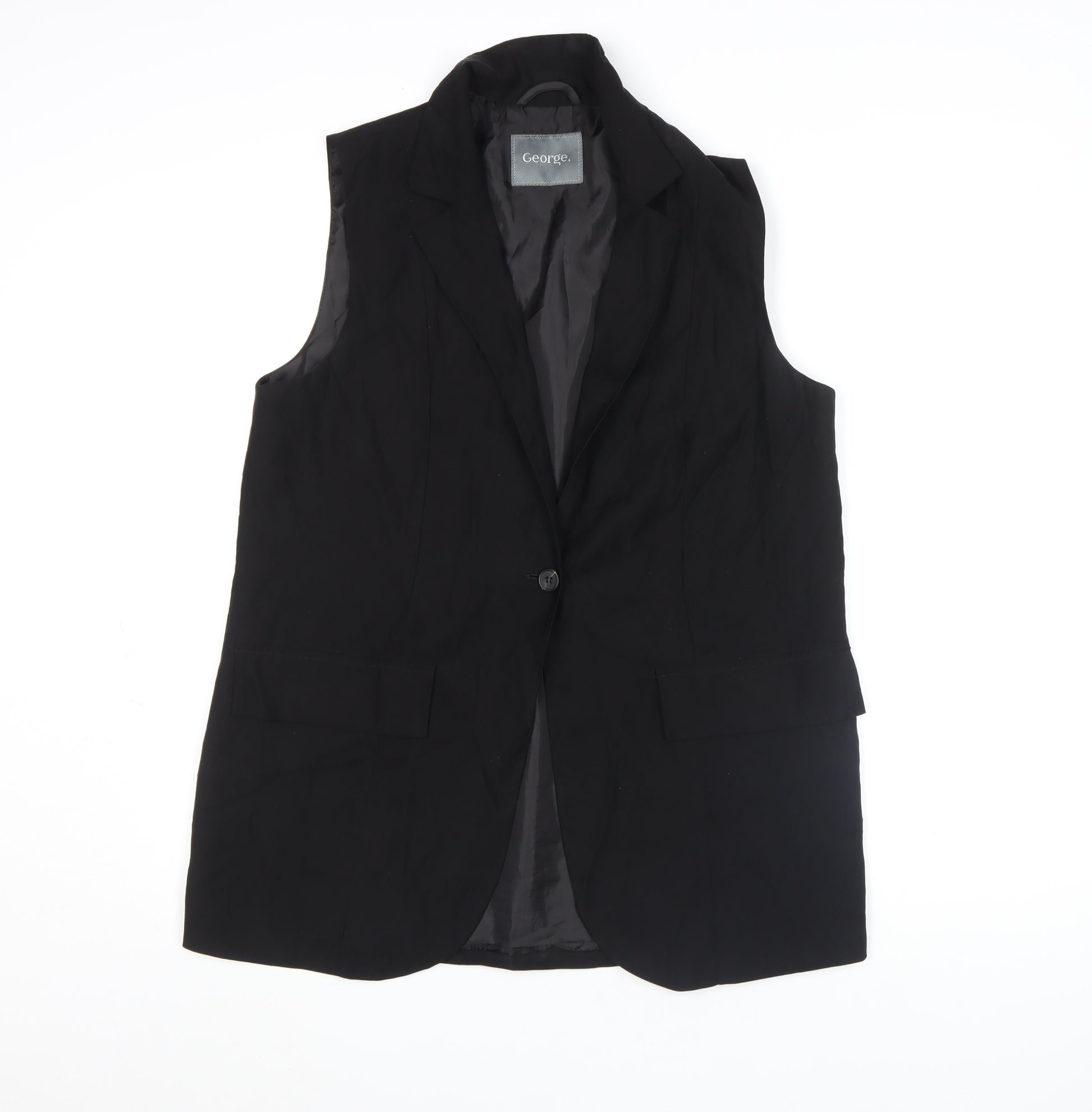 Elevate your wardrobe with this elegant black sleeveless blouse from George, designed in a flattering tunic style to bring effortless sophistication to your look. Crafted for modern women who appreciate versatile pieces, this top offers a timeless silhouette that transitions seamlessly from office to evening. The classic collared neckline and the single button closure give it a tailored finish, making it suitable for both business and casual occasions. Made from a soft viscose and polyester blend, the fabric feels smooth on the skin while maintaining a structured drape. The woven texture and lightweight design ensure comfort throughout the day, while the subtle lining adds extra durability and shape retention. Perfect for layering under blazers or wearing solo during warmer months, this top complements a variety of outfits — from smart trousers to flowy skirts. Its regular fit flatters most body types and delivers an easy, confident wear suitable for workwear or weekend outings. The deep black hue presents a versatile, classic appeal that never goes out of style, making it an essential addition to any capsule wardrobe. Designed for women who value comfort and polish, this piece embodies the dependable quality and refined style associated with George’s collections. Whether styled with statement jewellery for formal ensembles or dressed down with jeans for a casual-chic look, the blouse remains effortlessly graceful. Impeccably made and machine washable for convenience, this sleeveless top offers both practicality and sophistication. Ideal for spring, summer, or layering through cooler months, it’s the kind of piece you’ll reach for time and again whenever you need a timeless, fuss-free outfit solution. Choose this George black sleeveless tunic blouse for its combination of style, comfort, and easy wear — a smart, versatile choice for the modern woman’s wardrobe.
