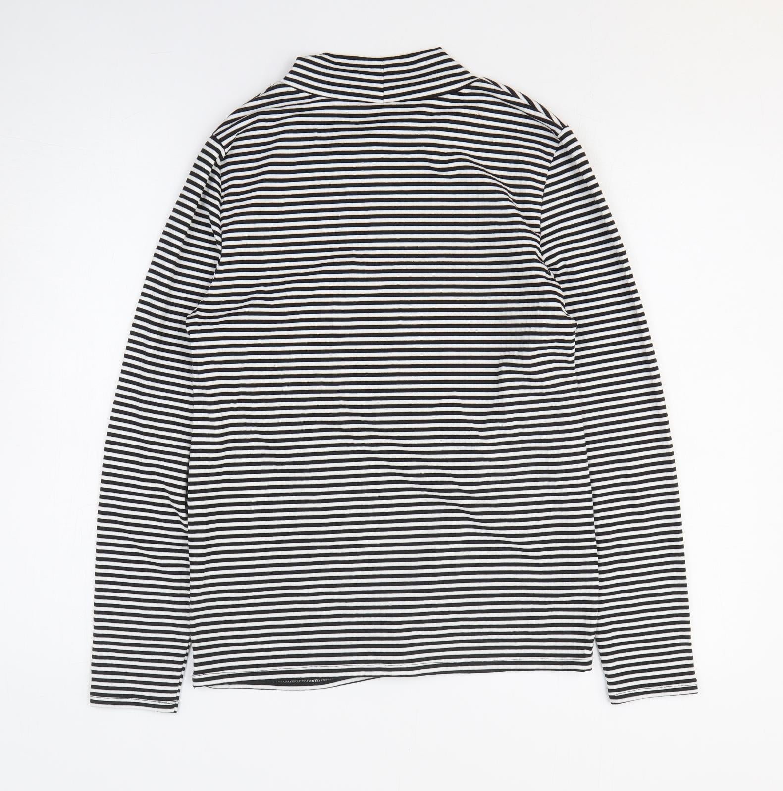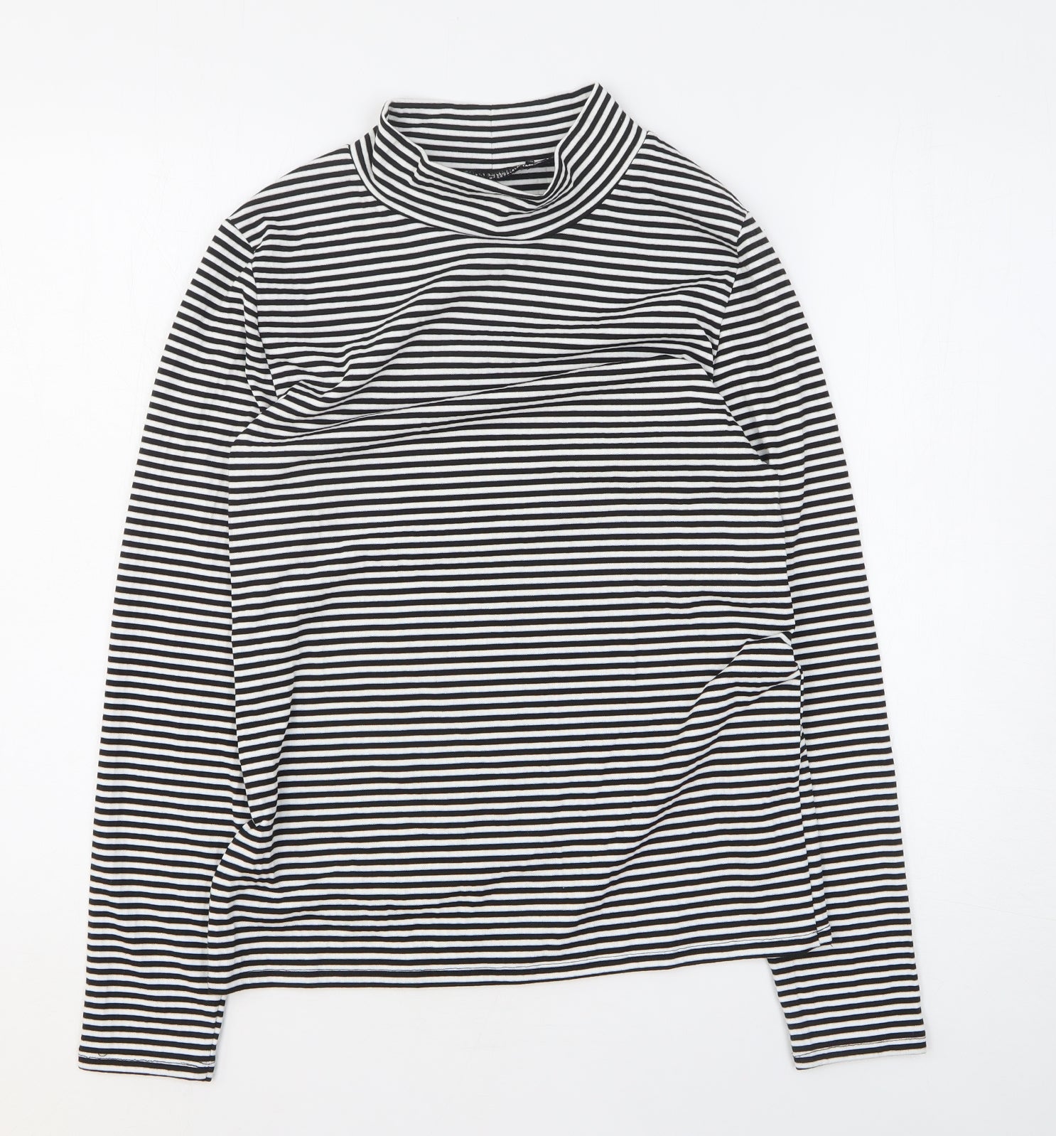 Womens Black Striped Viscose Basic T-Shirt Size 16 Mock Neck