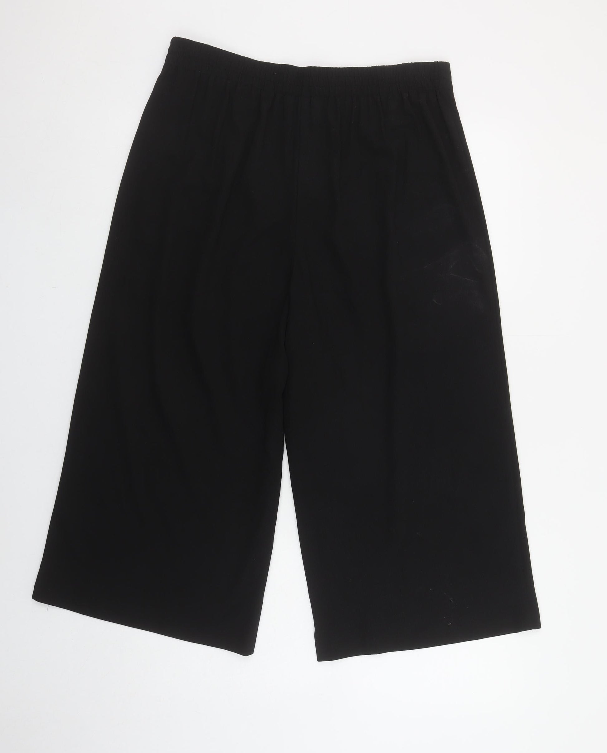 Womens Black Wide-Leg Cropped Trousers Size 12