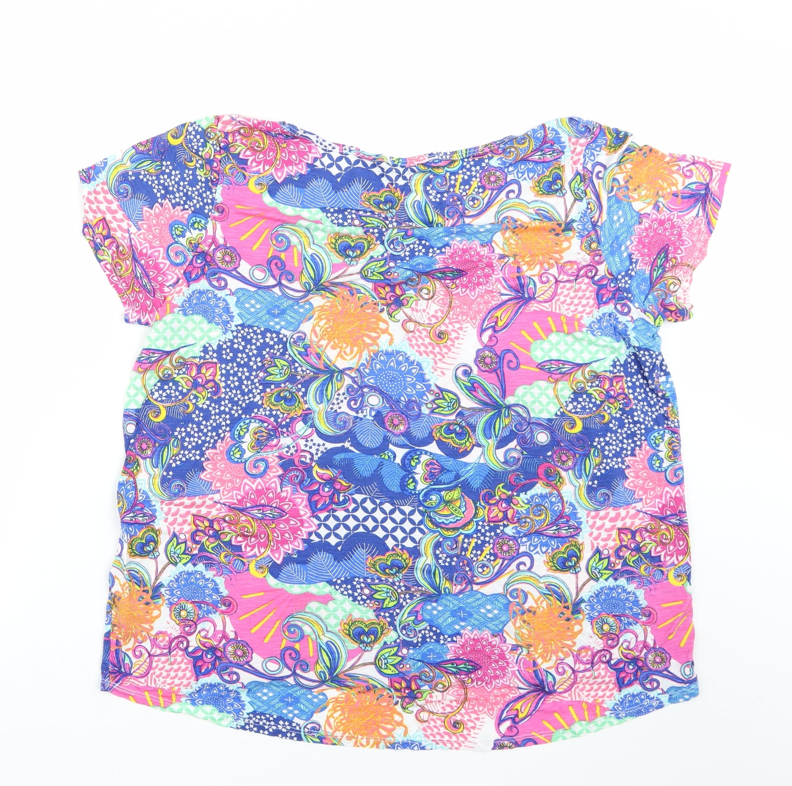 Marks and Spencer Women's Blue Floral Jersey 3/4 Sleeve T-Shirt Size 20