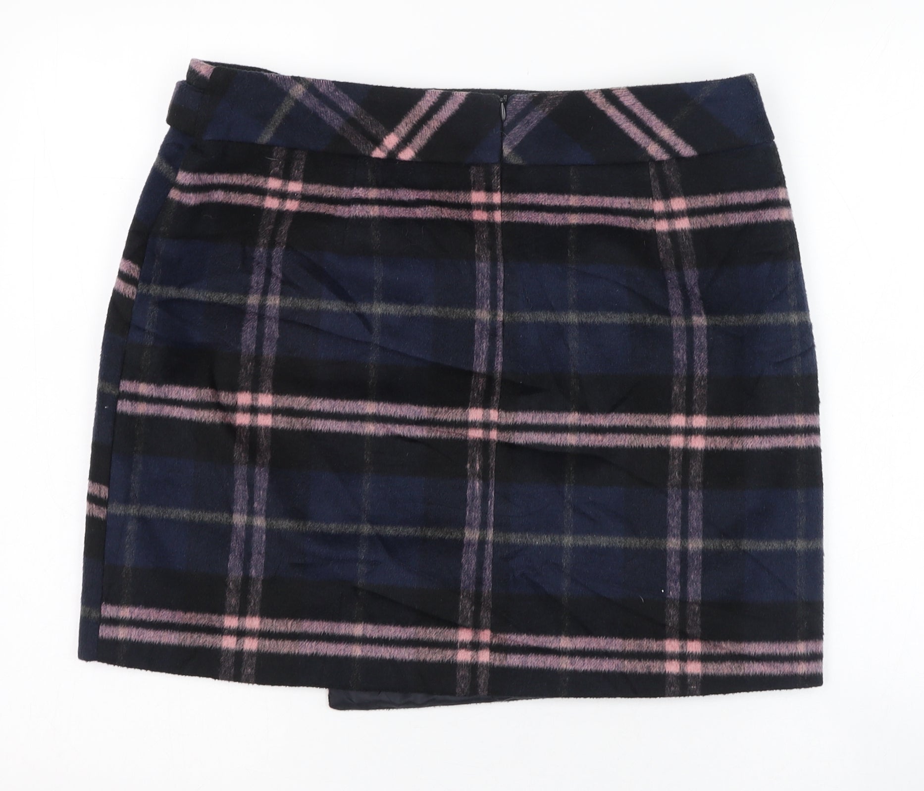 Womens Blue Check Polyester Straight & Pencil Skirt Size 14 Zip