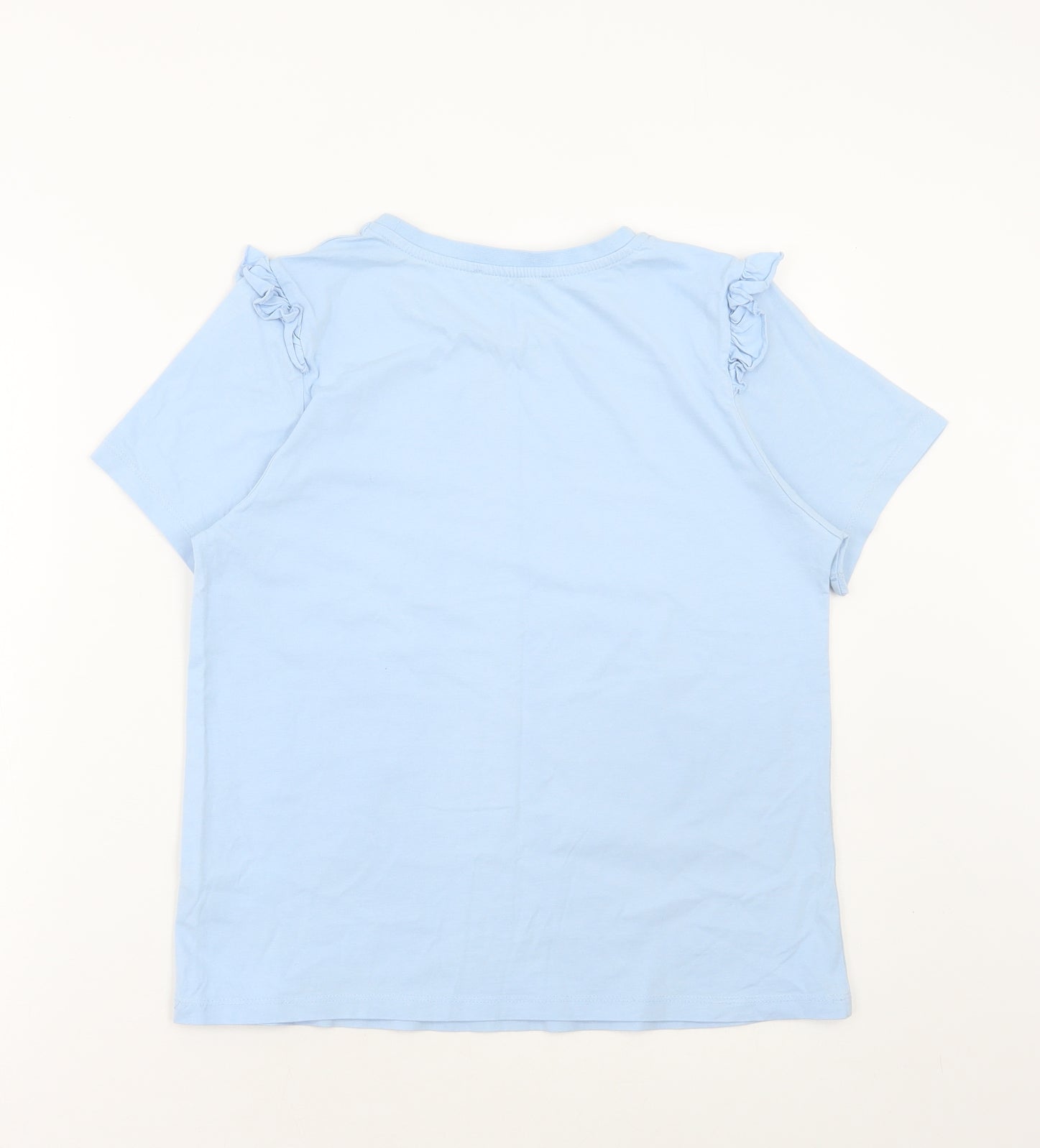Womens Blue Cotton Basic T-Shirt Size 12 Round Neck - Frill sleeve