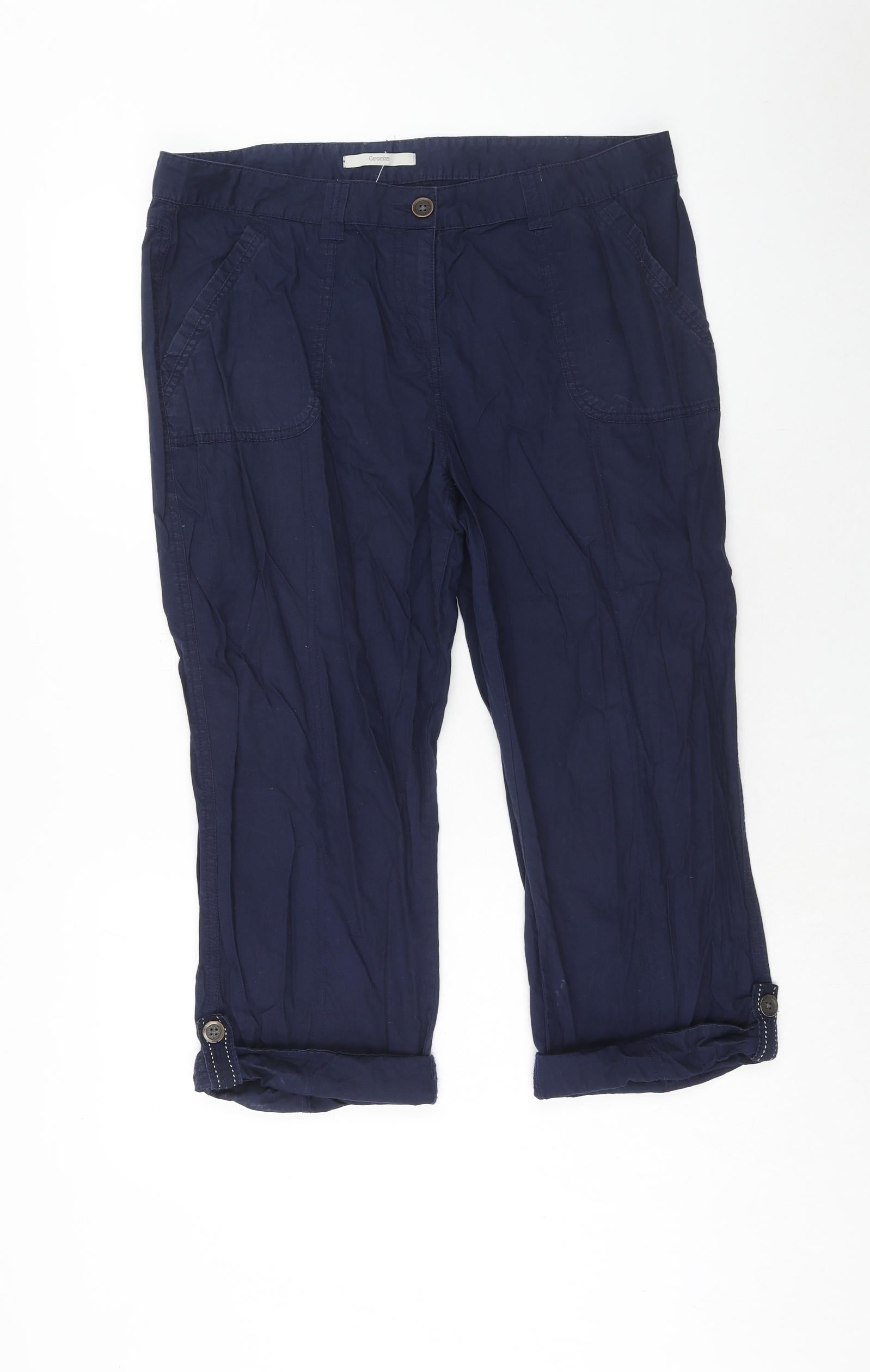 Womens Blue Cotton Cropped Trousers Size 14 Regular Zip