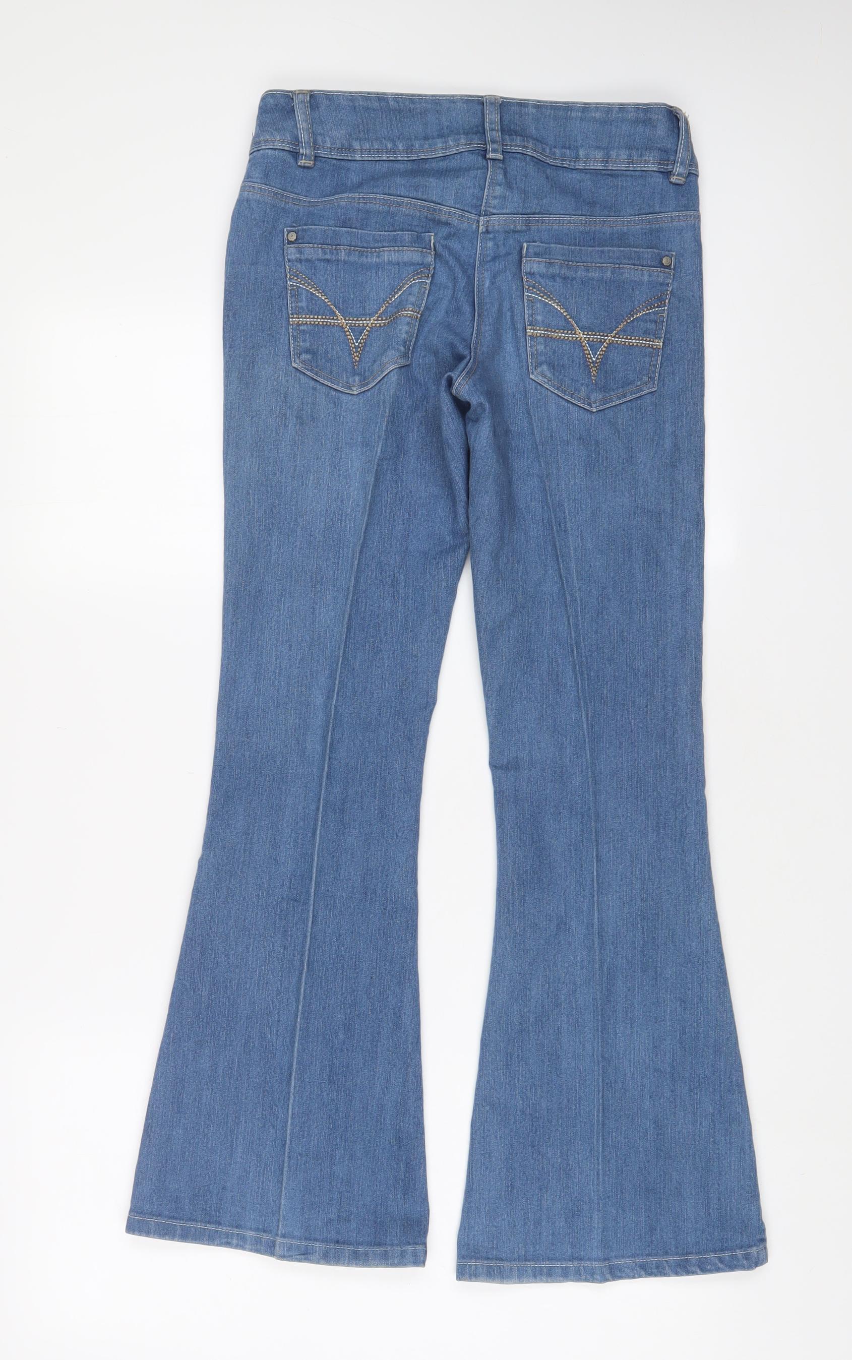 Womens Blue Cotton Flared Jeans Size 8 L29 in Regular Zip