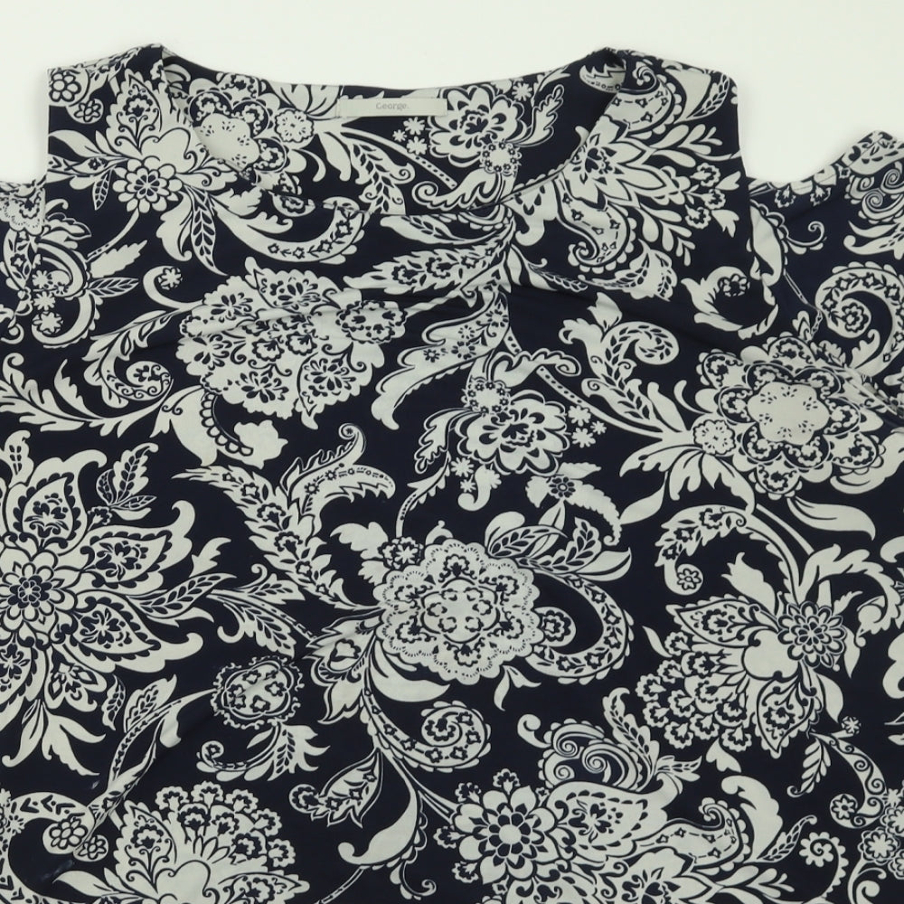 Womens Blue Geometric Polyester Basic T-Shirt Size 24 Crew Neck - Cold Shoulder