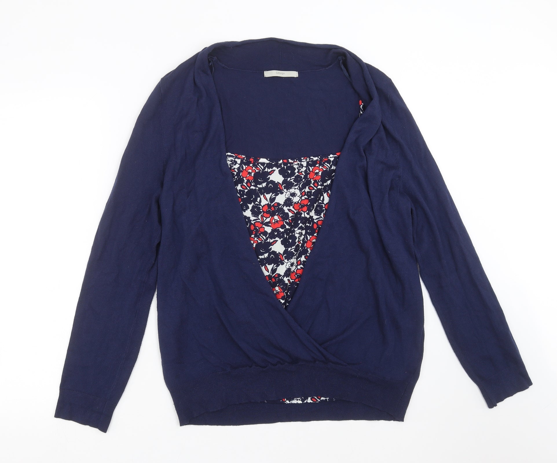 Womens Blue Knit Pullover Jumper Size 16 - jumper with blouse
