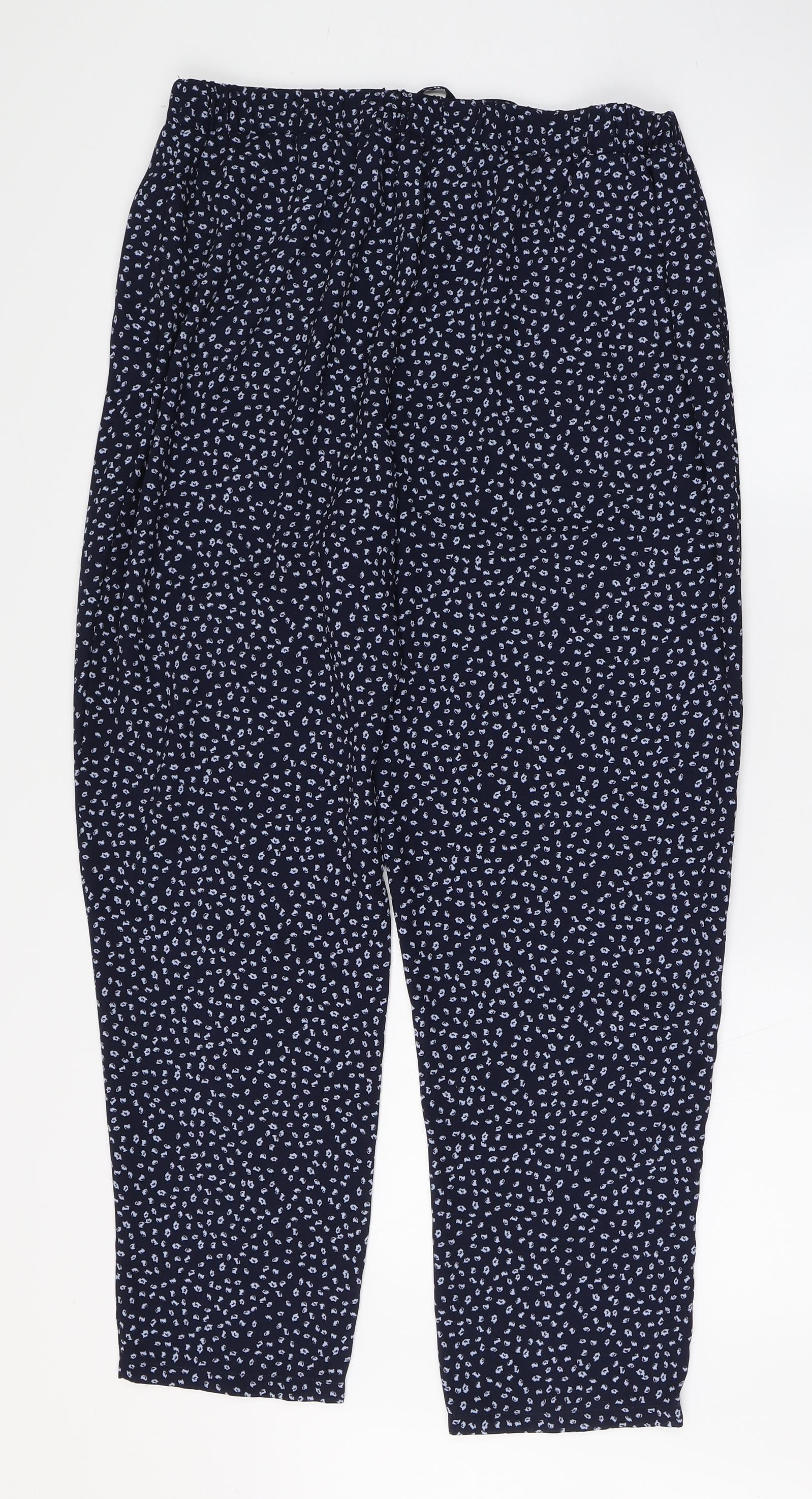 Womens Blue Polka Dot Polyester Trousers Size 14 L27 in Regular