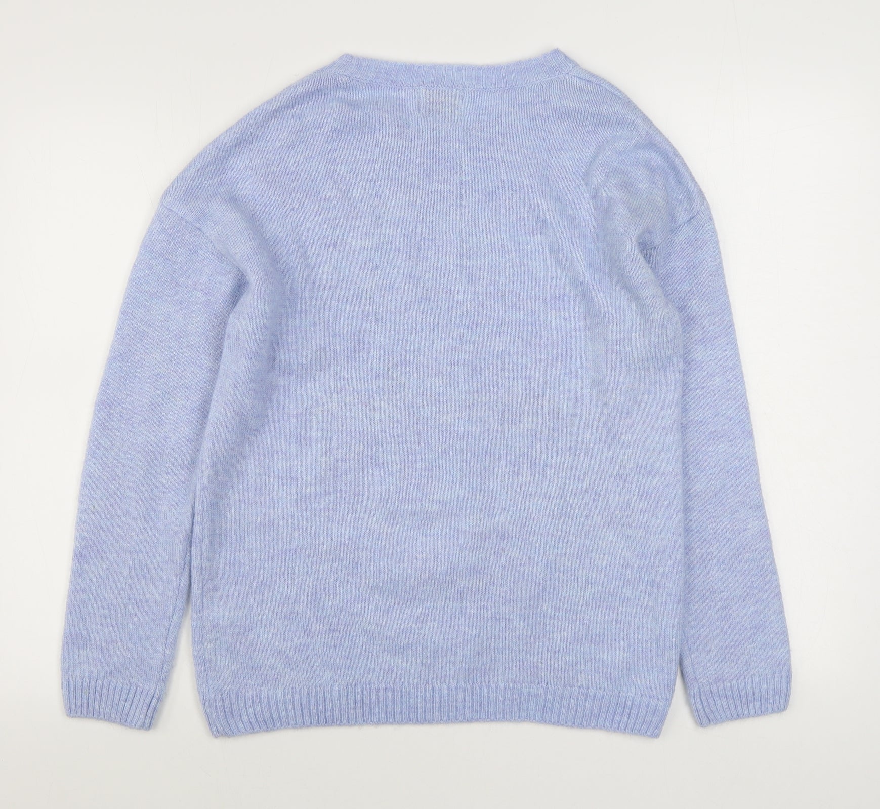 Womens Blue Round Neck Acrylic Pullover Jumper Size M