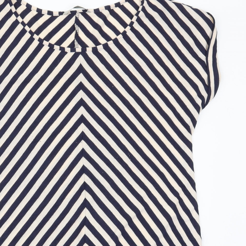 White Stuff Women's Blue Striped Long Sleeve Cotton T-Shirt UK 10