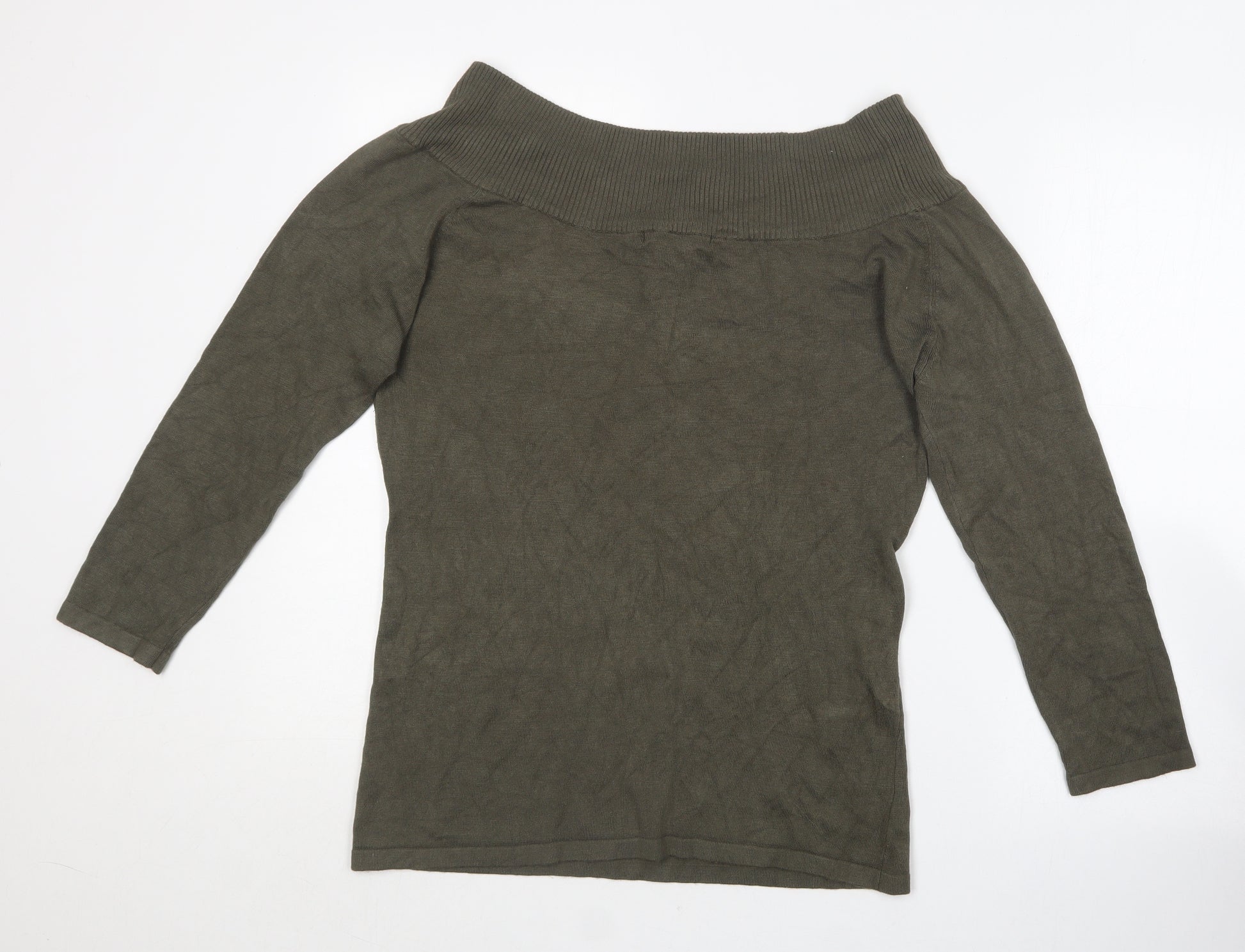 Womens Green Boat Neck Viscose Pullover Jumper Size 16