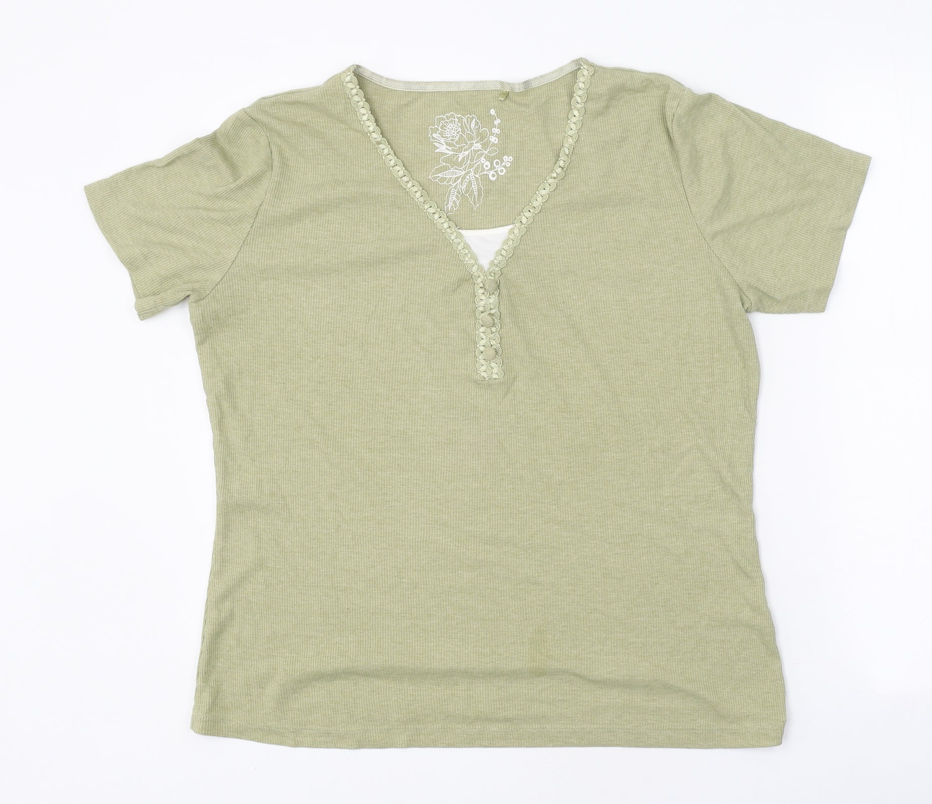 Marks and Spencer Women’s Green V-Neck Beaded Trim T-Shirt Size 18