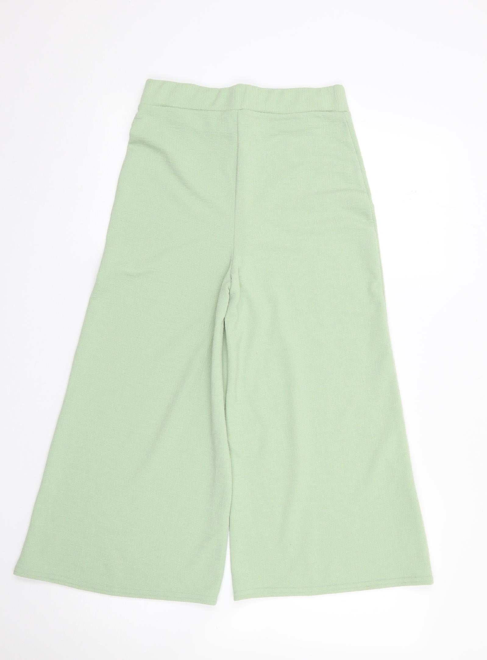 Womens Green Polyester Cropped Trousers Size 10 L20 in Regular Drawstring