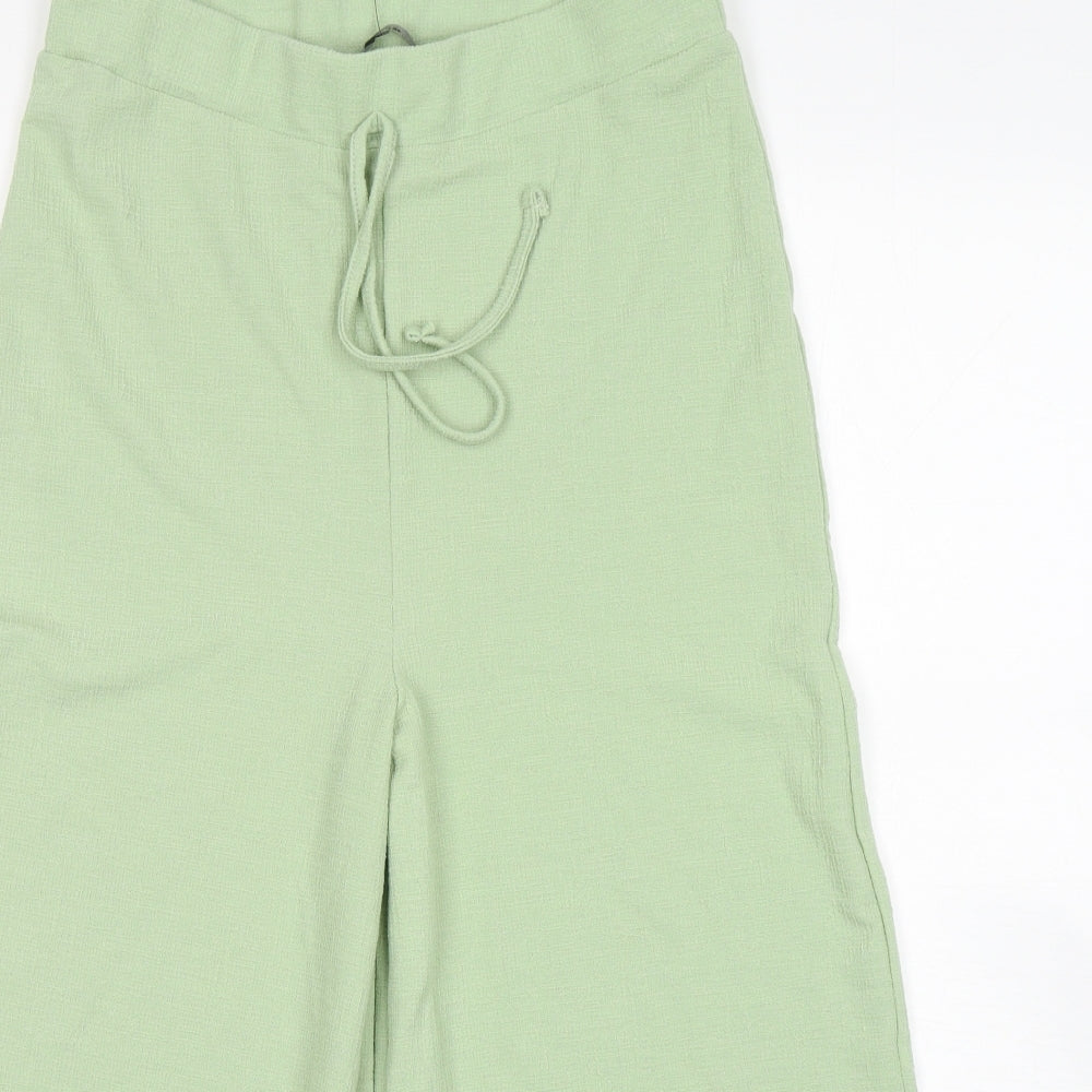 Womens Green Polyester Cropped Trousers Size 14 L21 in Regular Drawstring