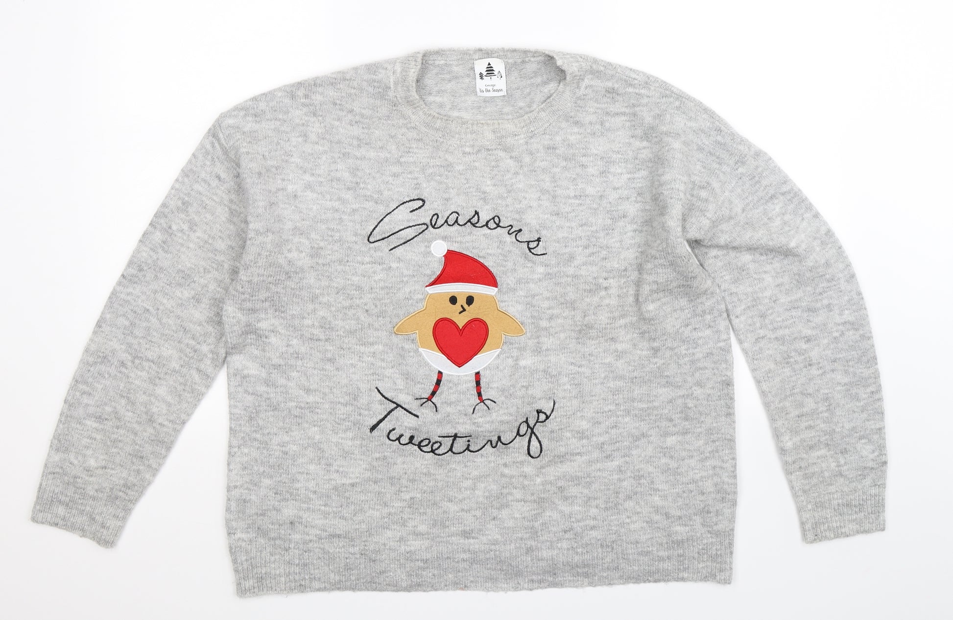 Womens Grey Knit Pullover Jumper Size L - Christmas