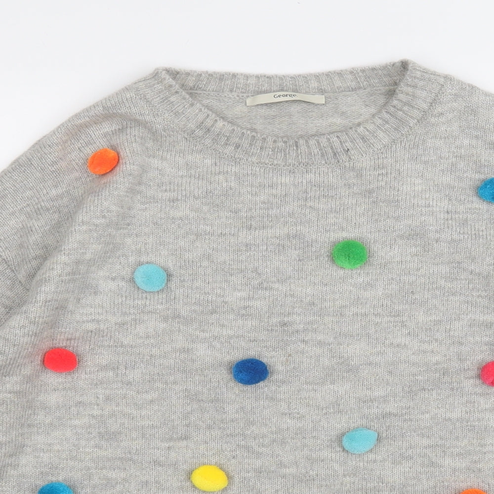 Womens Grey Round Neck Geometric Acrylic Pullover Jumper Size 16