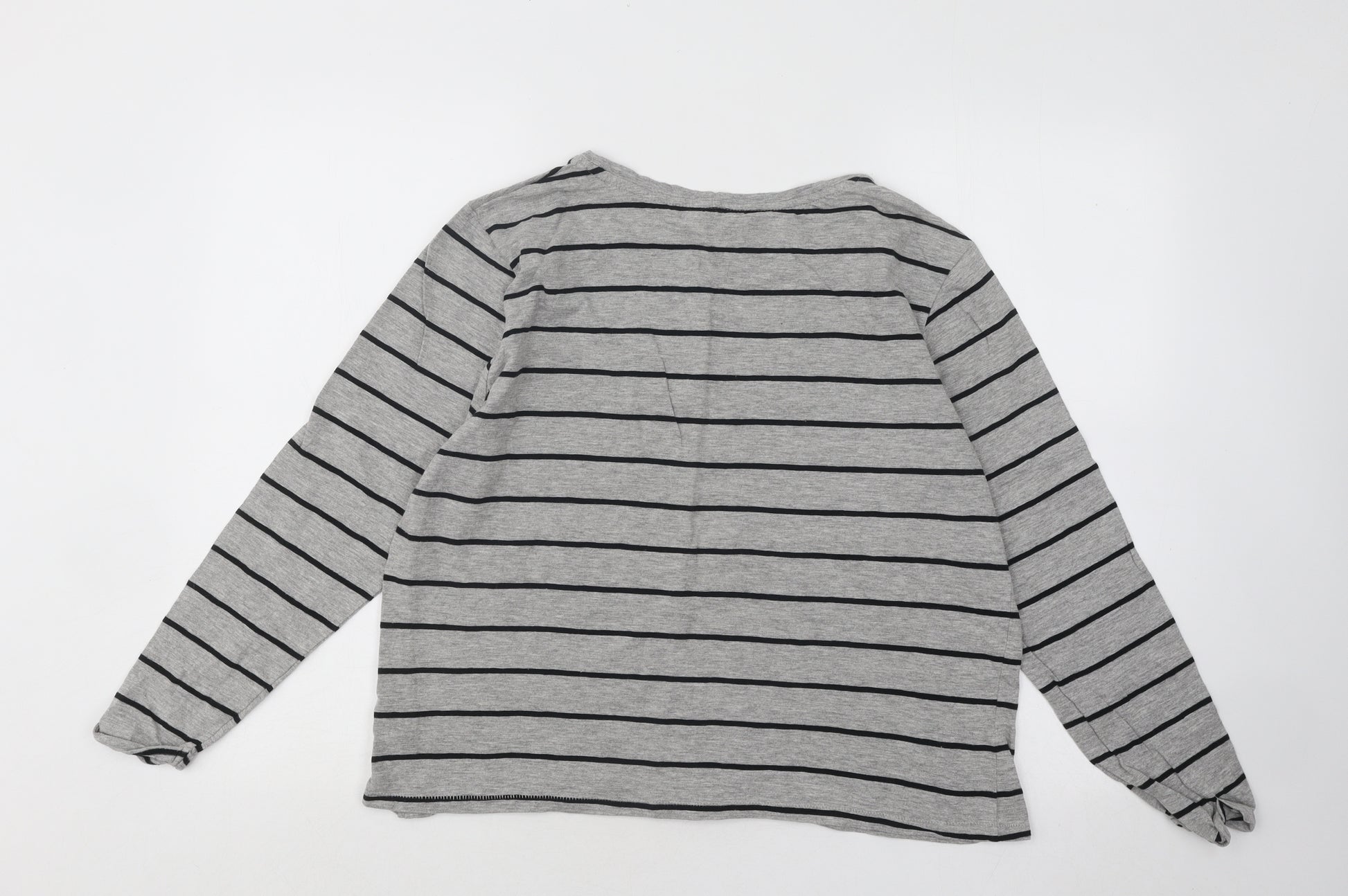 Womens Grey Striped Cotton Basic T-Shirt Size 16 Round Neck