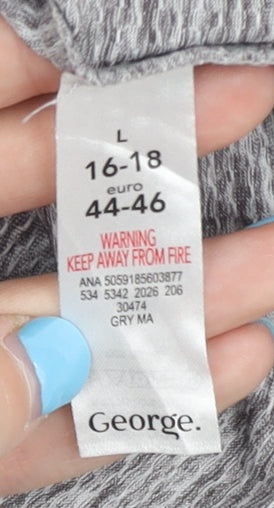 Discover casual comfort with the George Women's Grey T-Shirt, perfect for any active lifestyle. Designed for versatility, this T-Shirt combines style and practicality, making it a staple for both casual outings and exercise routines. Crafted from 100% polyester jersey fabric, it offers lightweight comfort and durability. The solid grey colour gives it a clean and modern look, allowing it to pair effortlessly with a variety of outfits. Its crew neck and short raglan sleeves provide unrestricted movement and an easy, relaxed fit, suitable for all body types. Ideal for all seasons, this T-Shirt ensures ease of care with its machine washable feature, making it a practical choice for your daily wear. Whether you're hitting the gym or enjoying a leisurely day out, this T-Shirt fits seamlessly into any wardrobe. Available in size 16-18, it caters to a regular fit, enhancing your everyday style with George's reputable quality. Elevate your collection with this essential piece, perfect for activewear enthusiasts who value both comfort and style. Get your hands on this versatile top today and experience the blend of form and function.