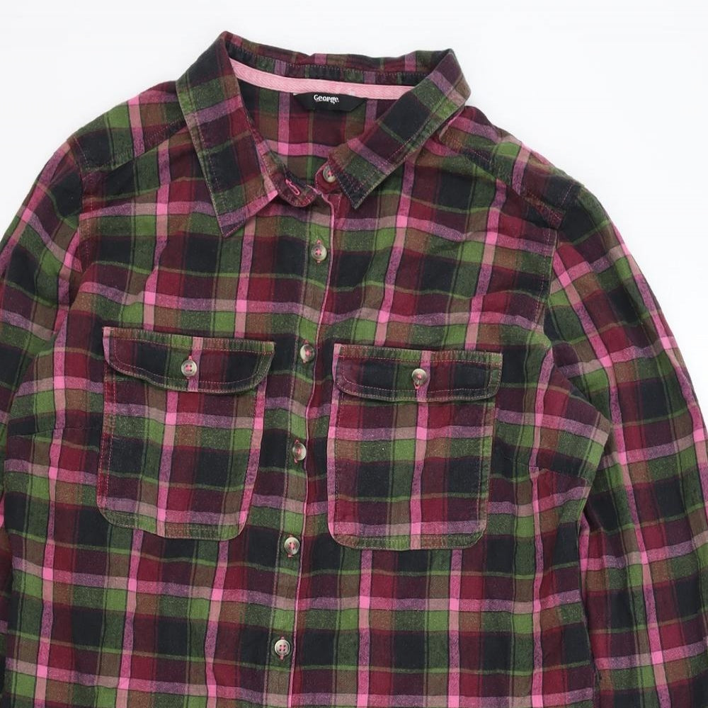 Womens Multicoloured Check Cotton Basic Button-Up Size 14 Collared