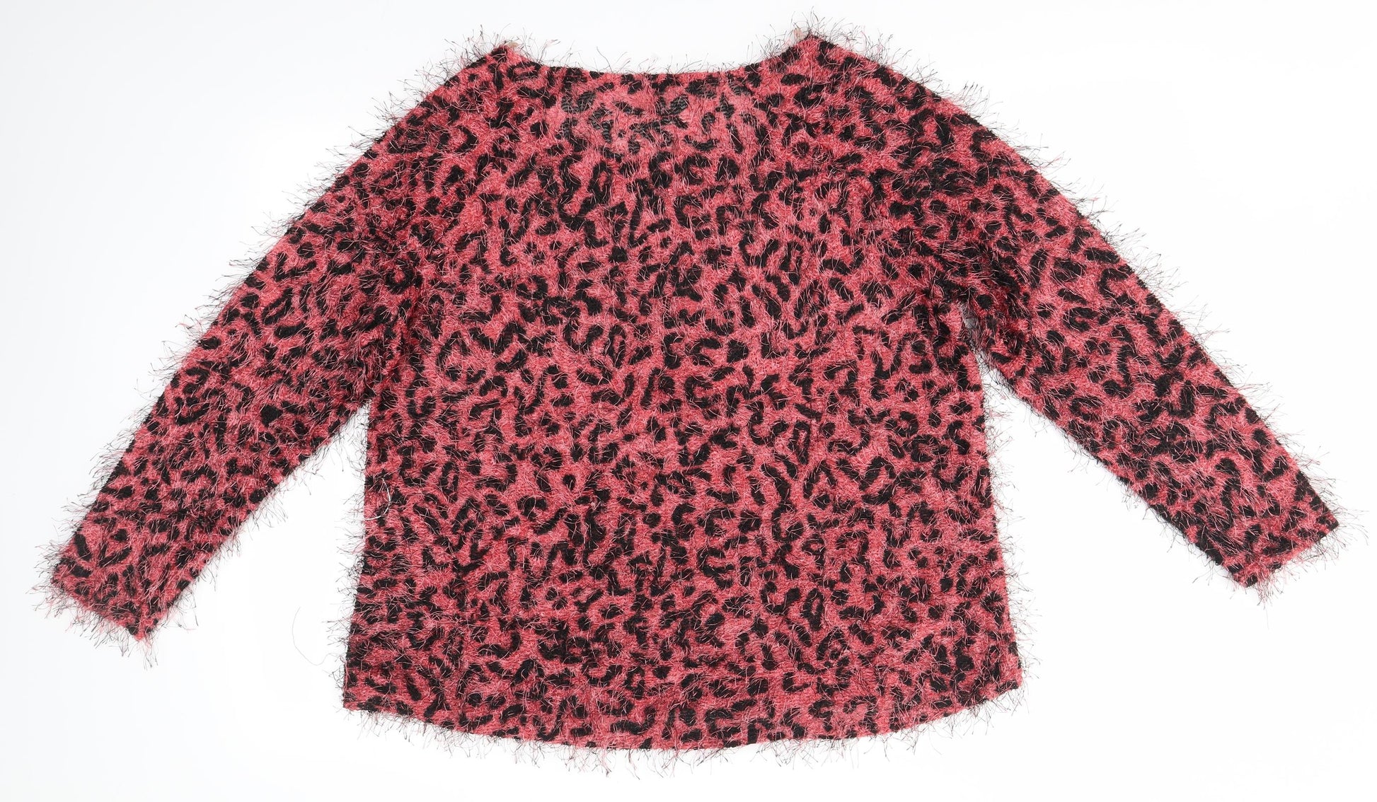 Womens Pink Round Neck Animal Print Polyester Pullover Jumper Size 14