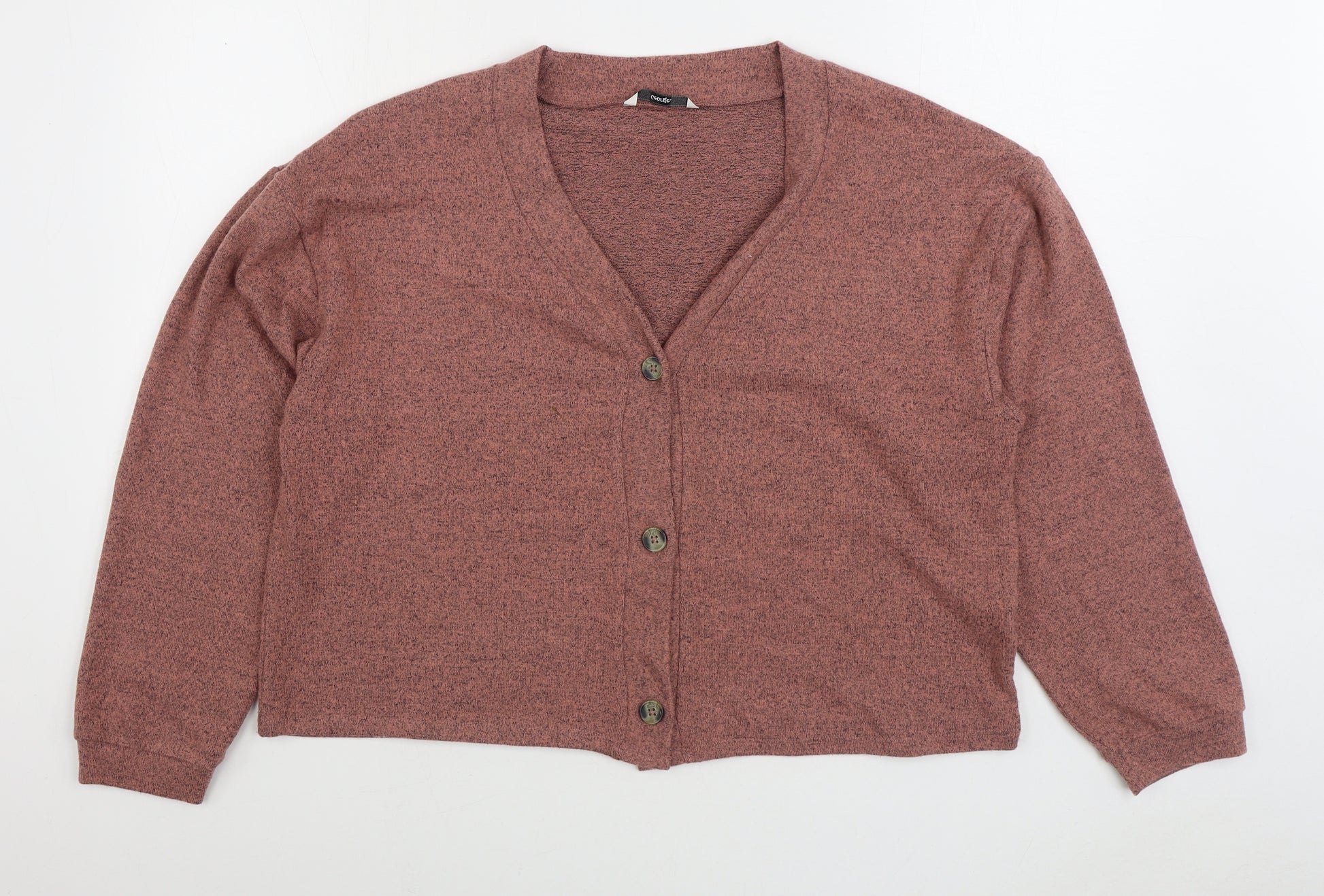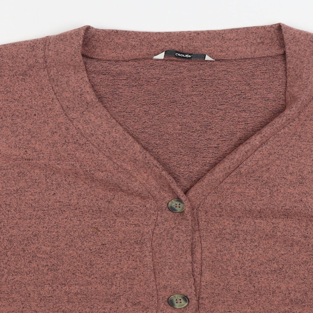 Womens Pink V-Neck Polyester Cardigan Jumper Size L