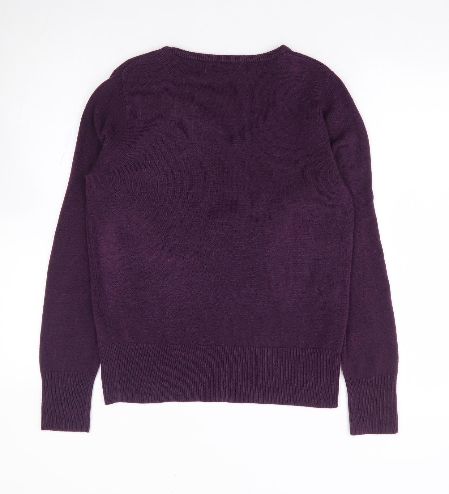 Womens Purple Scoop Neck Acrylic Pullover Jumper Size 12