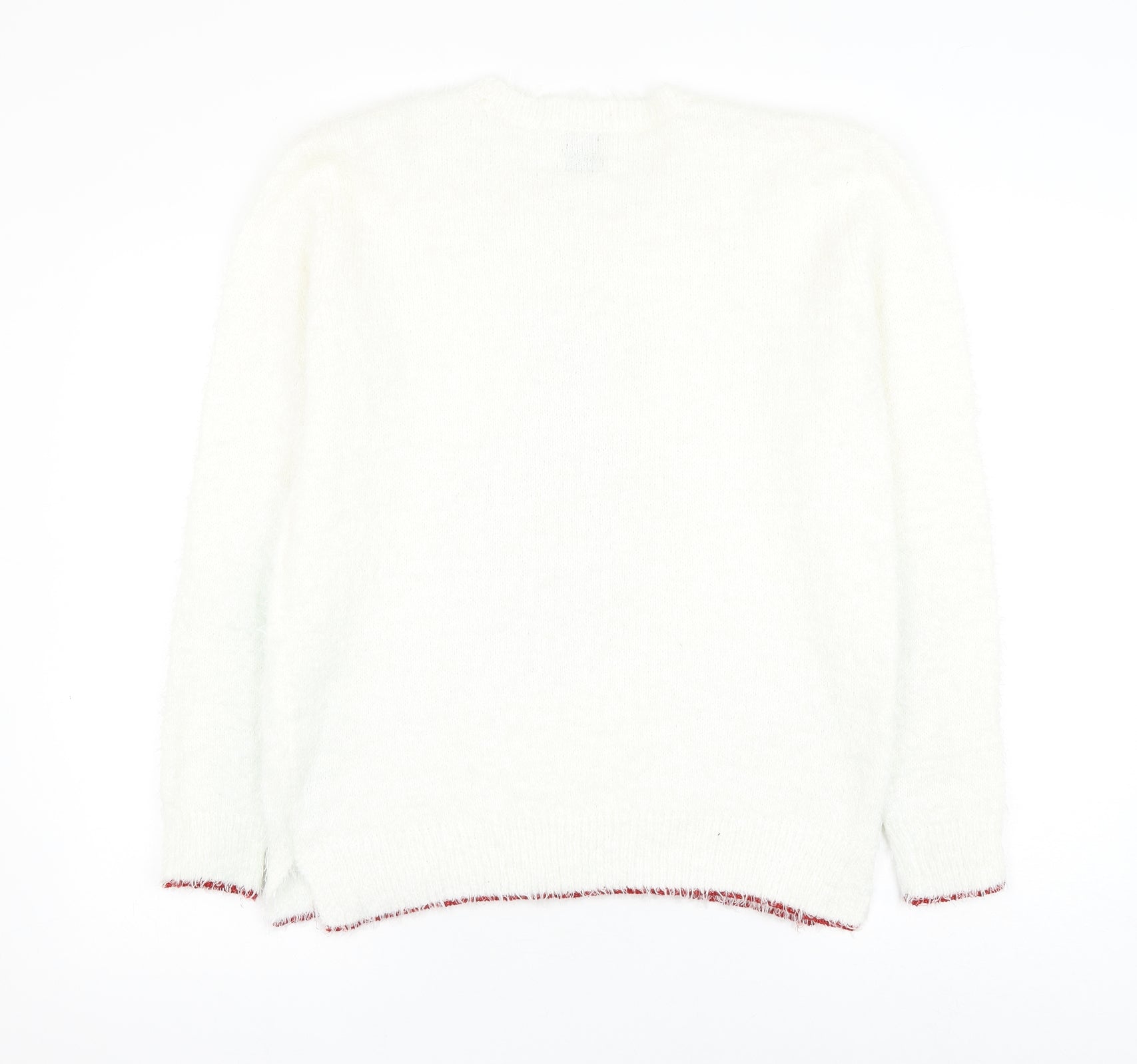 Womens White Round Neck Polyester Pullover Jumper Size 12 - Christmas