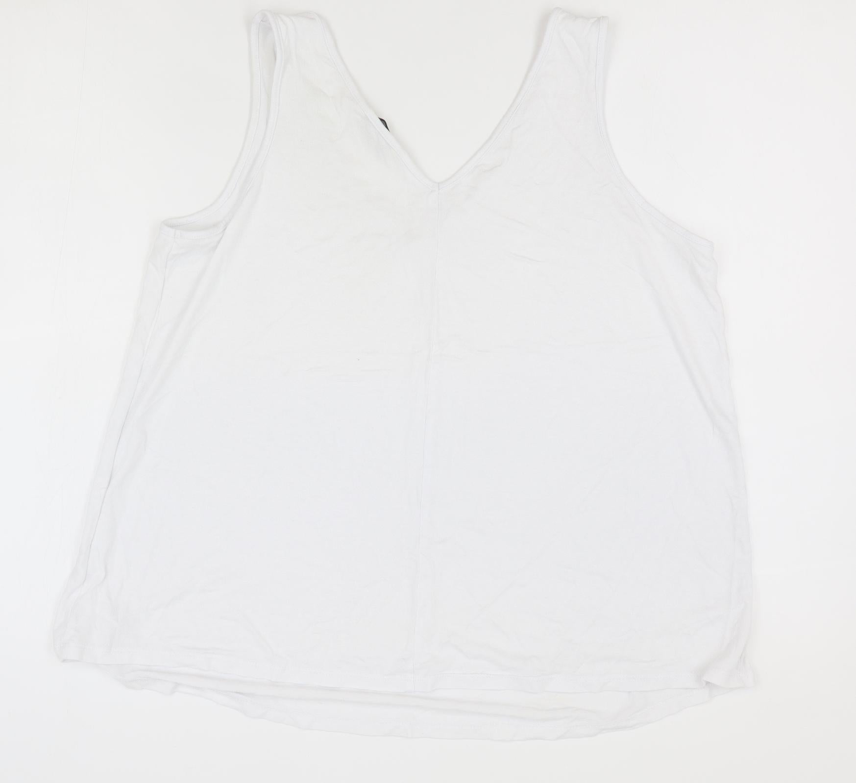 Womens White Viscose Basic Tank Size 14 V-Neck