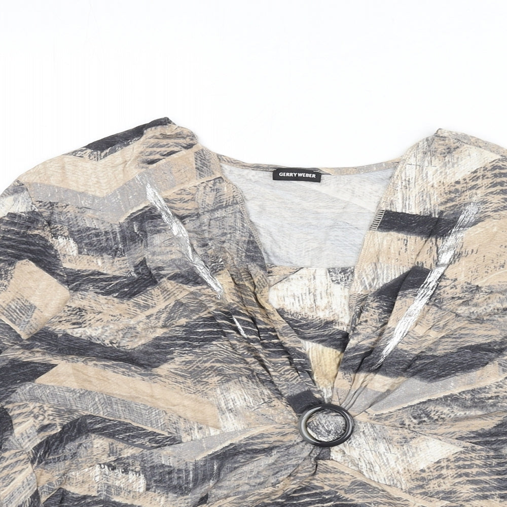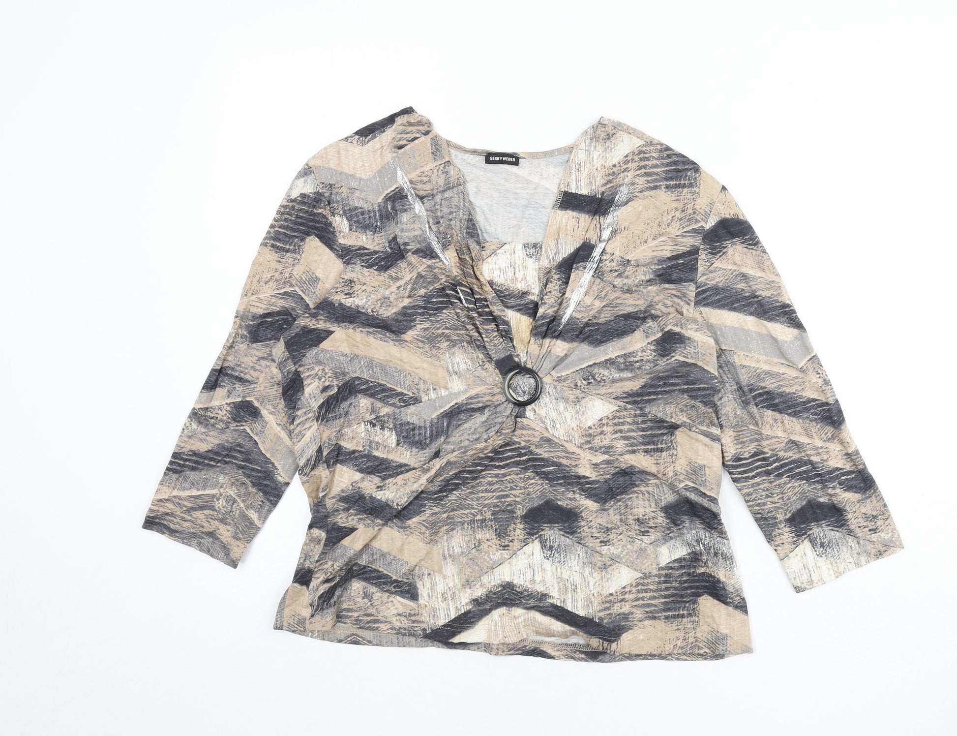 Womens Multicoloured Geometric Polyester Basic T-Shirt Size 16 V-Neck
