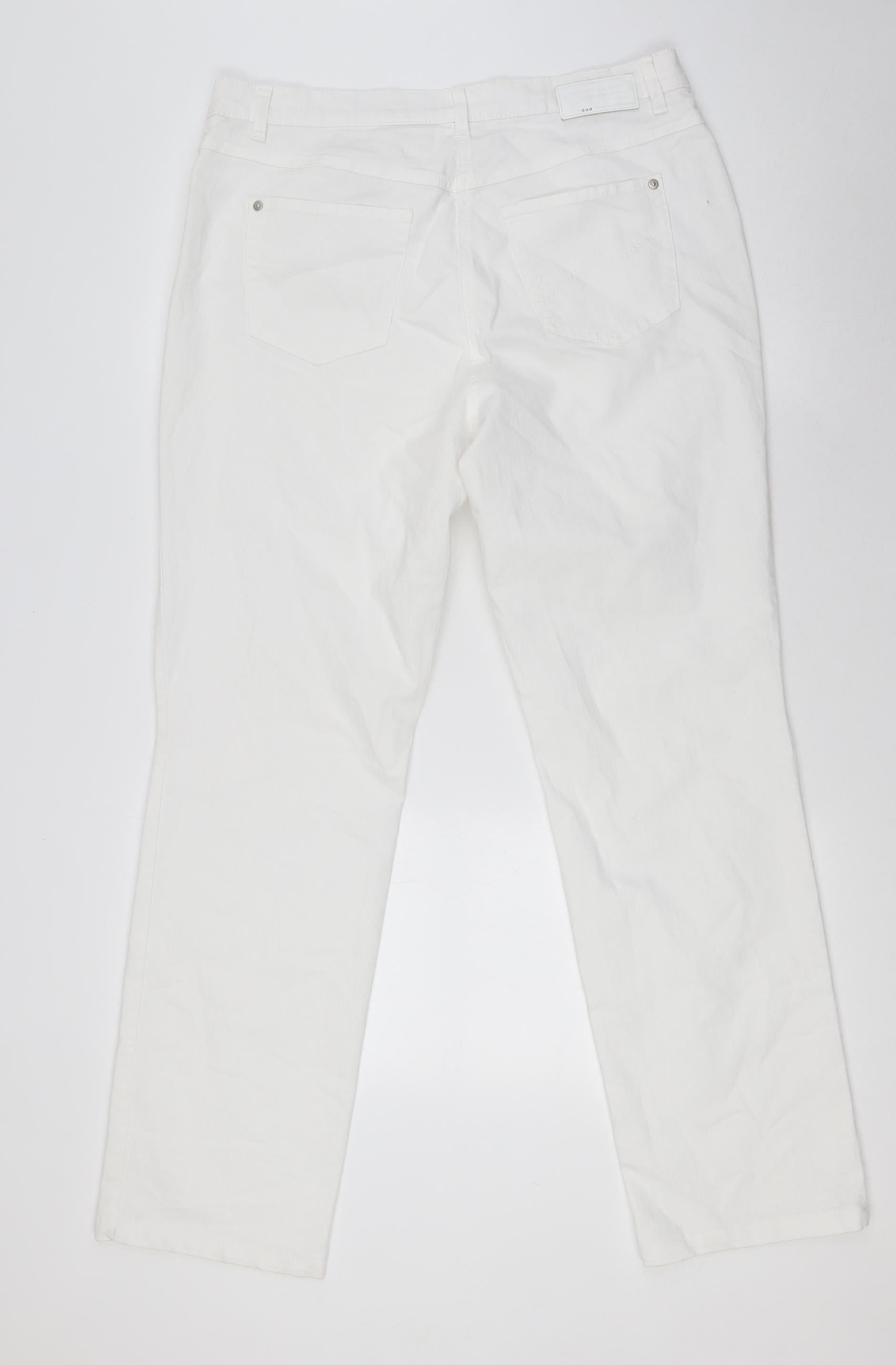 Womens White Cotton Straight Jeans Size 14 L31 in Regular Button