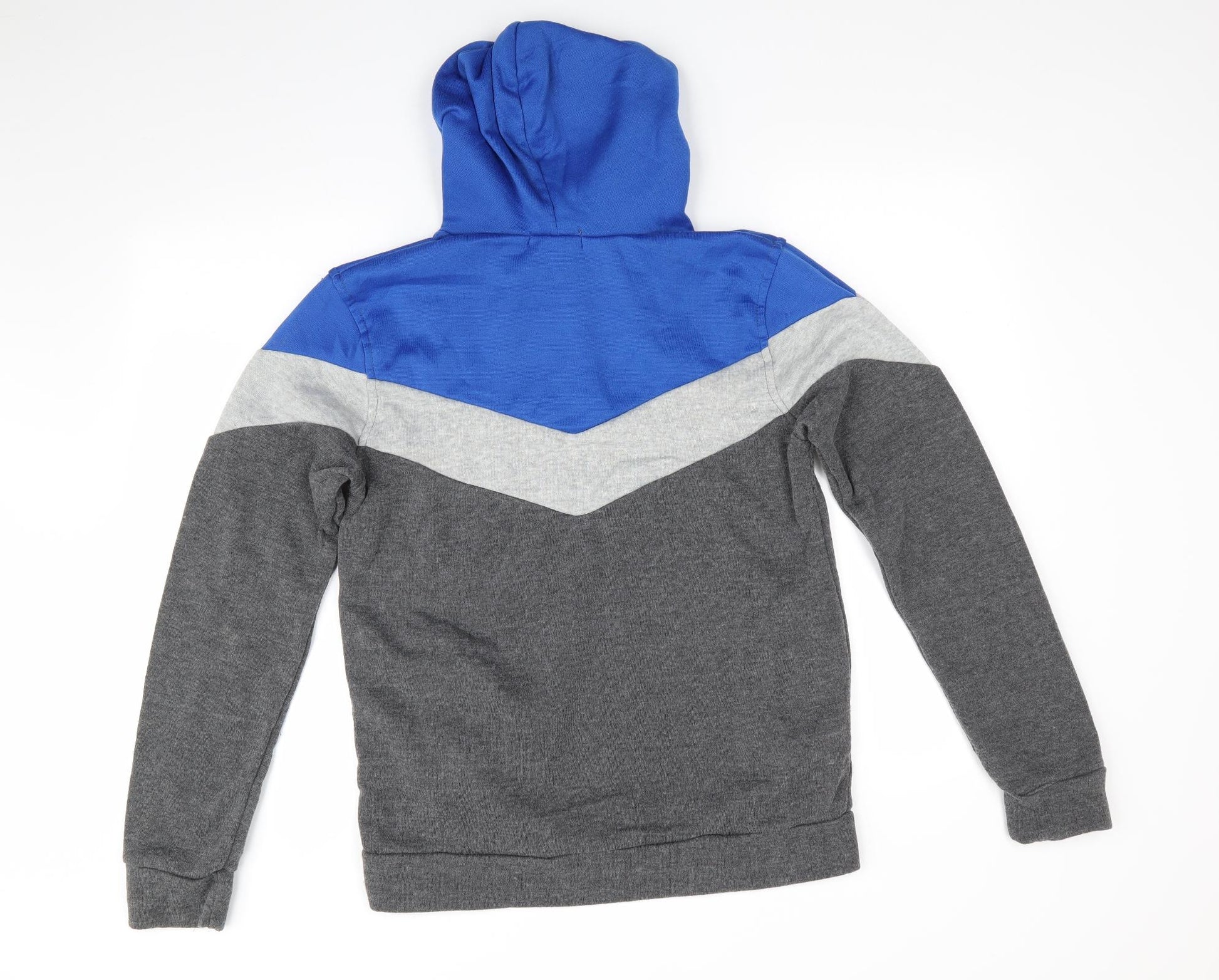 Mens Grey Pullover Hoodie Size L - Blue & Grey Colourblock