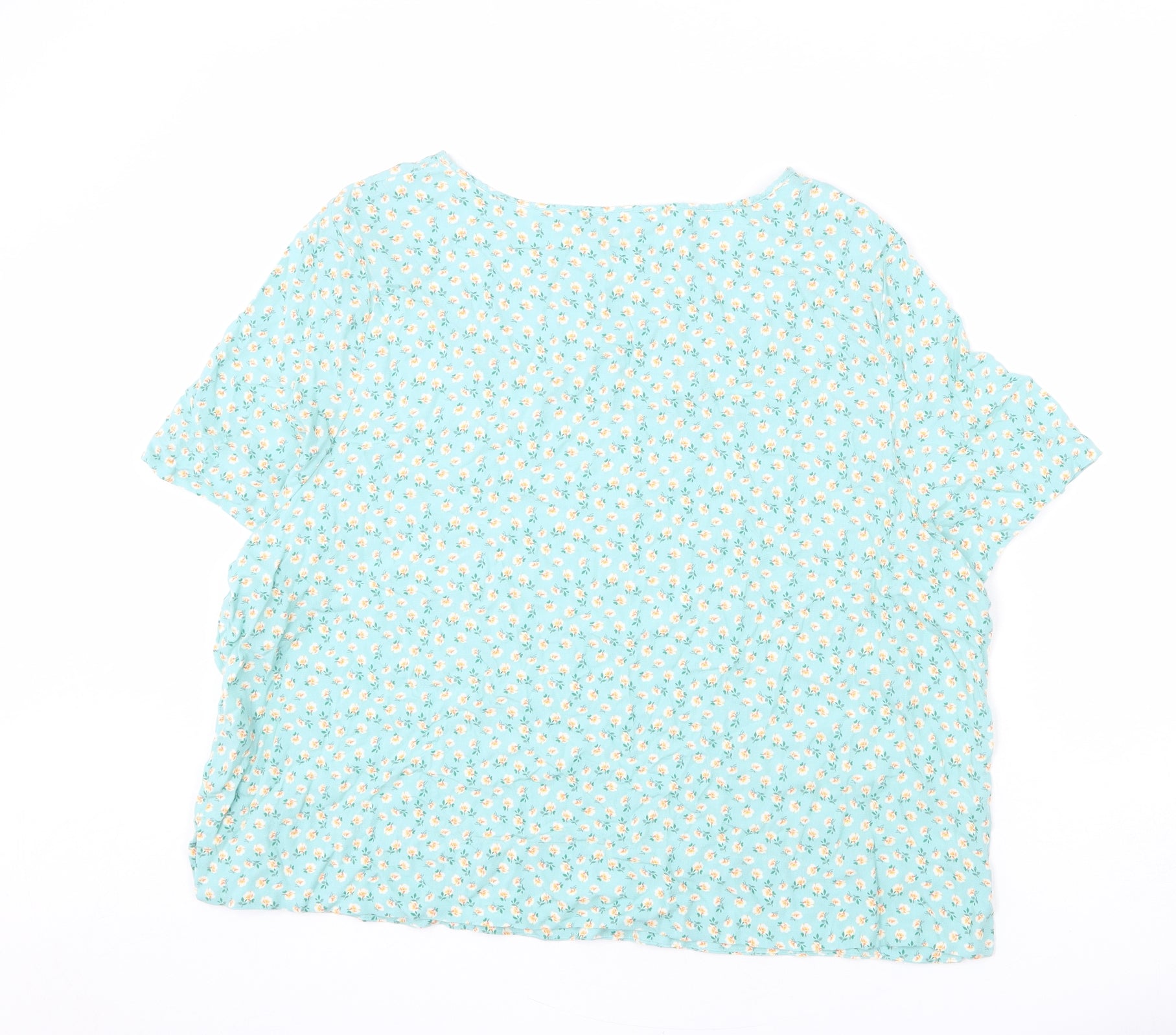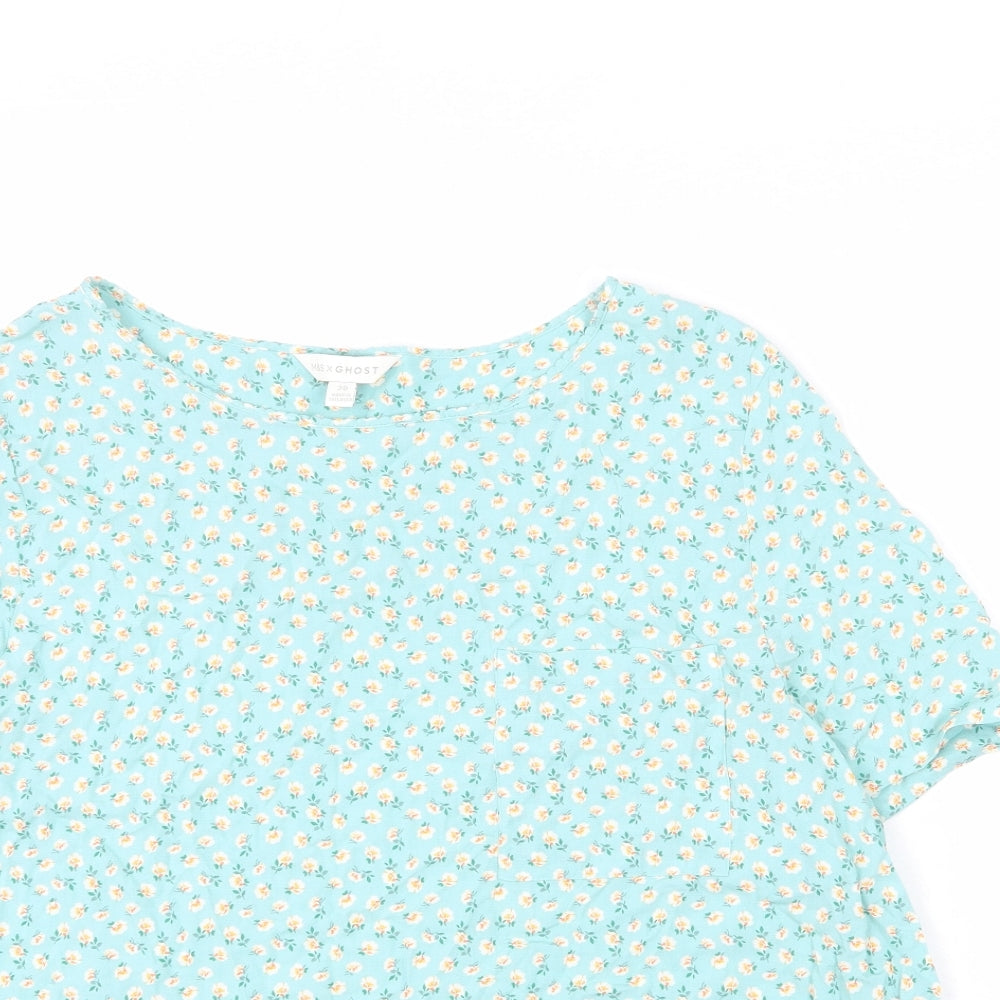 Womens Blue Floral Viscose Basic Blouse Size 20 Boat Neck